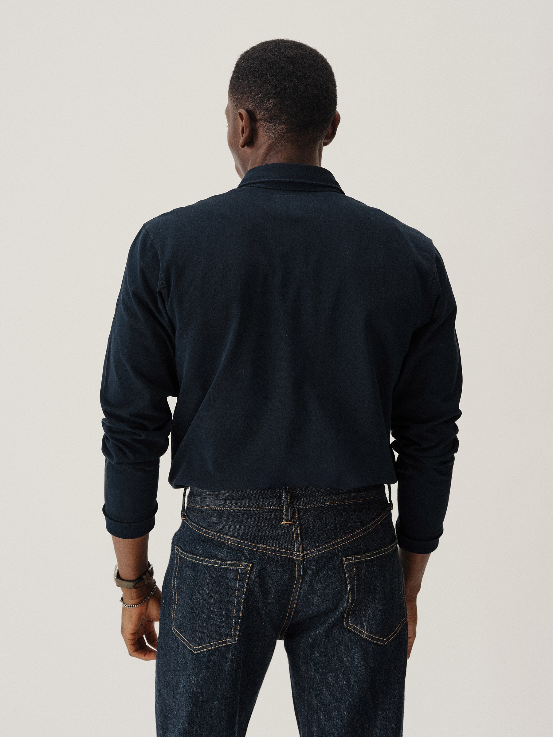 Ivy-style collared pullover shirt in a cool-to-the-touch compact cotton jersey.