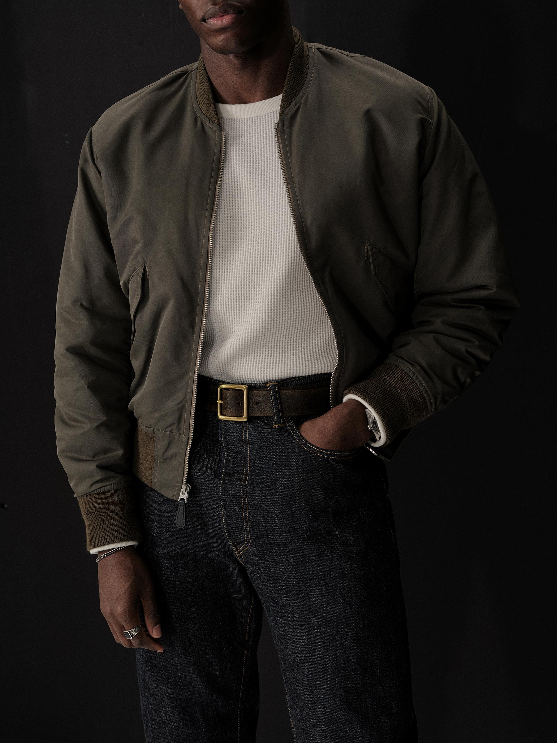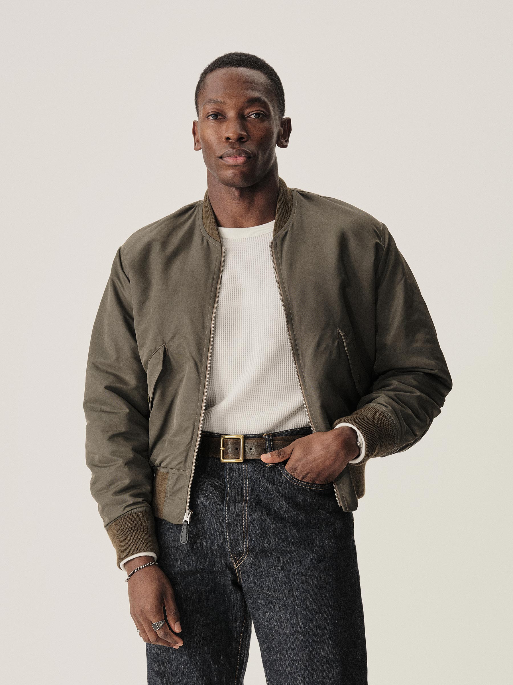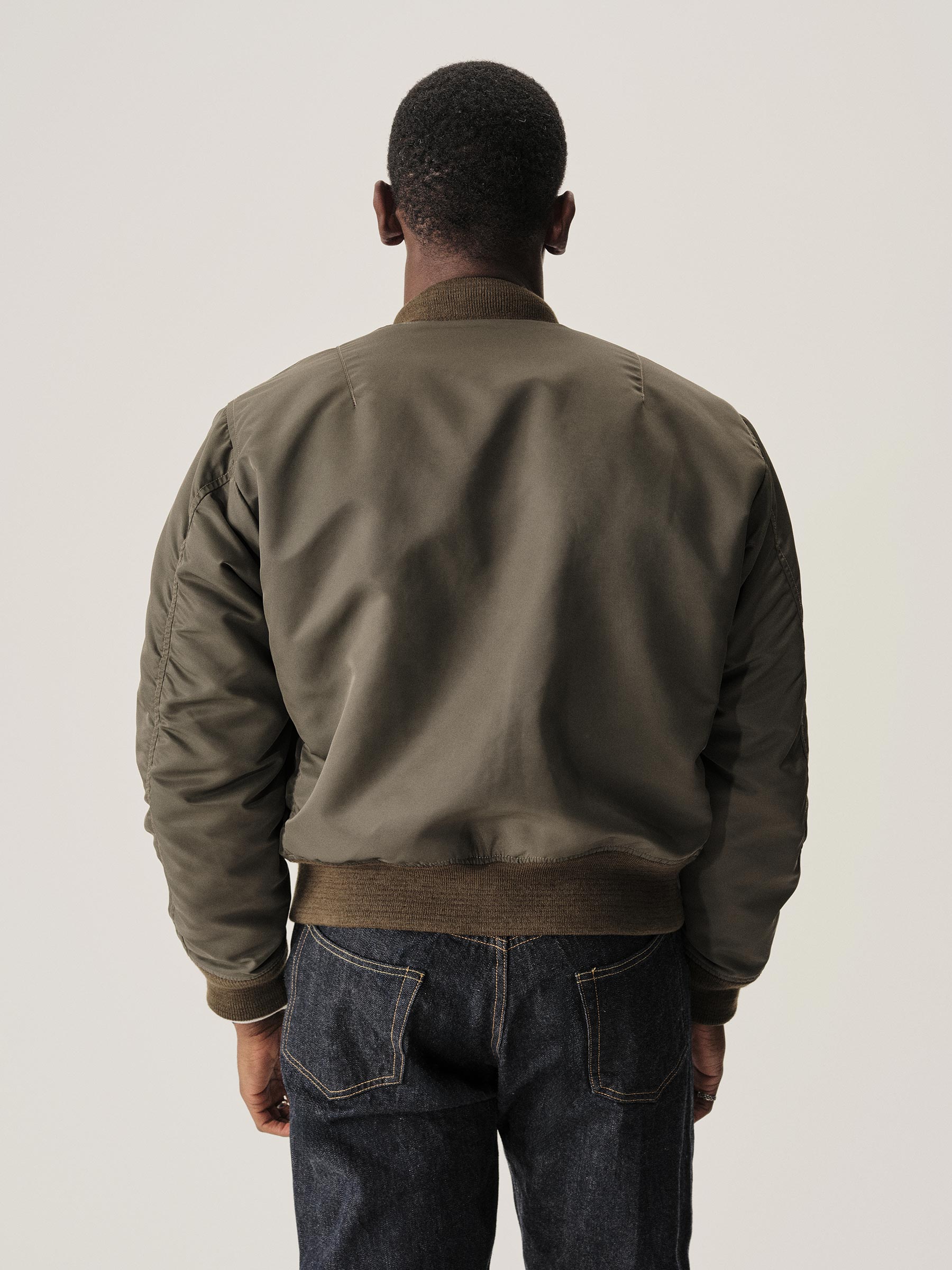 A relaxed fit satin bomber based on the classic 1960s flight jacket.