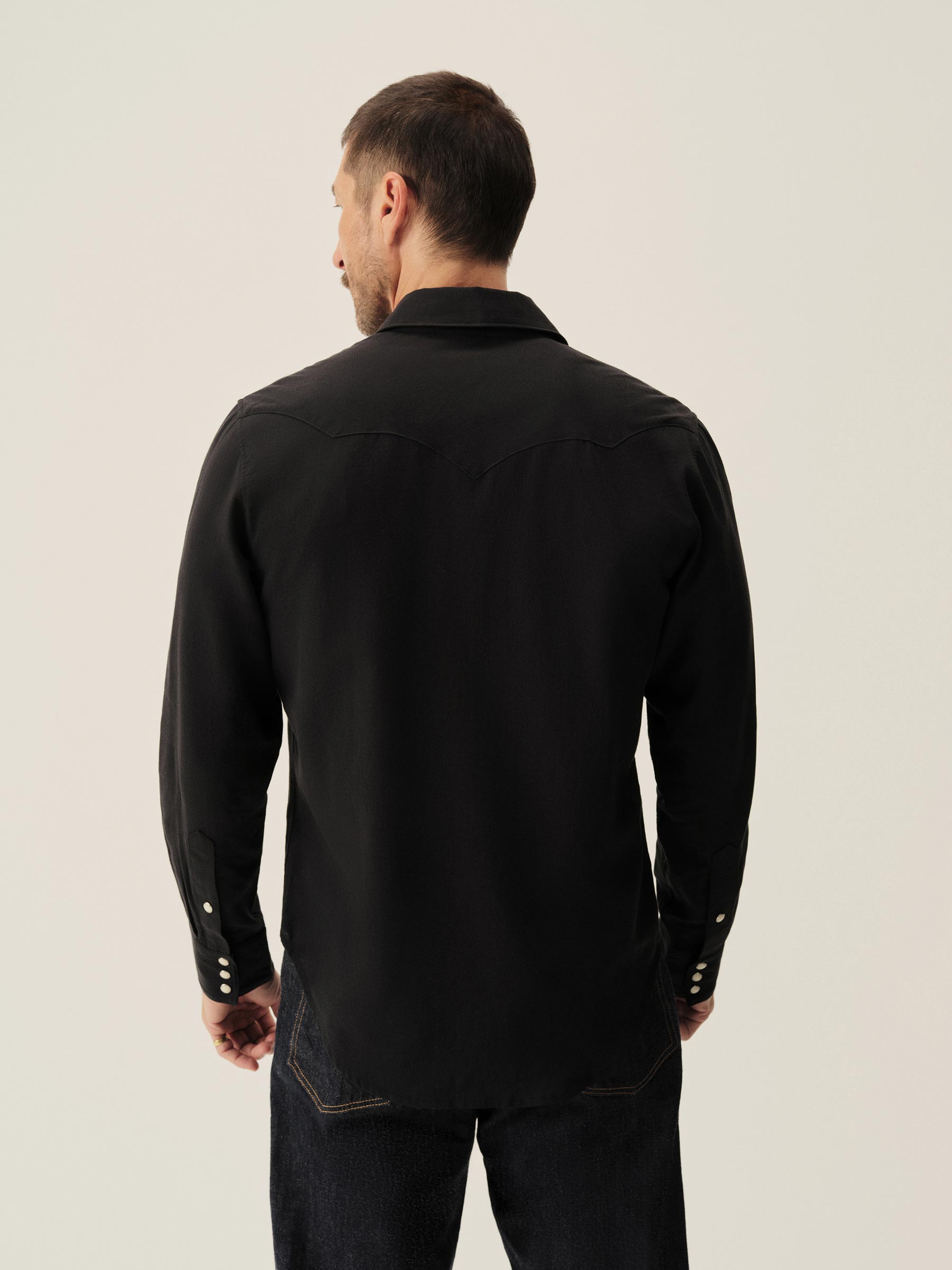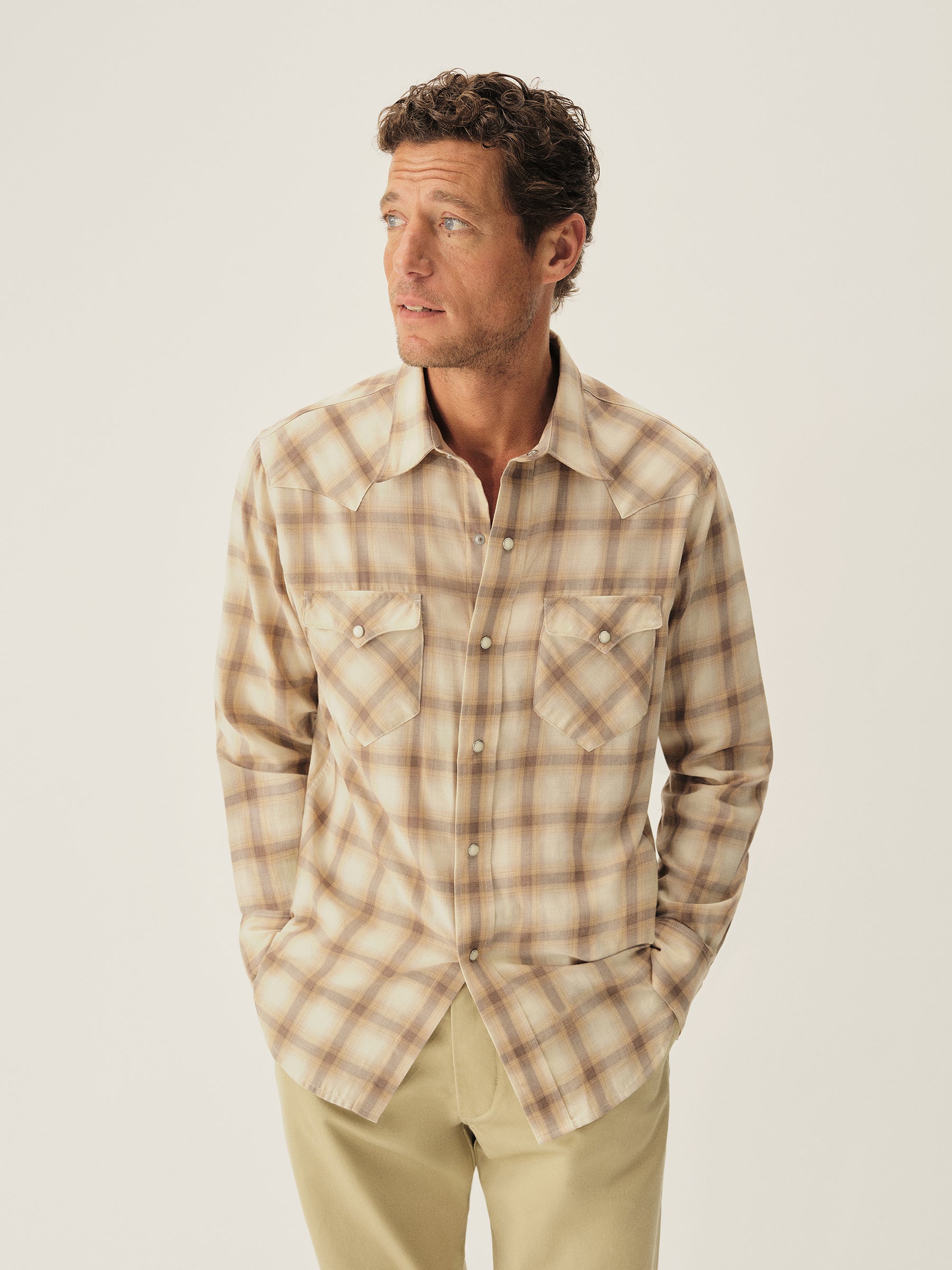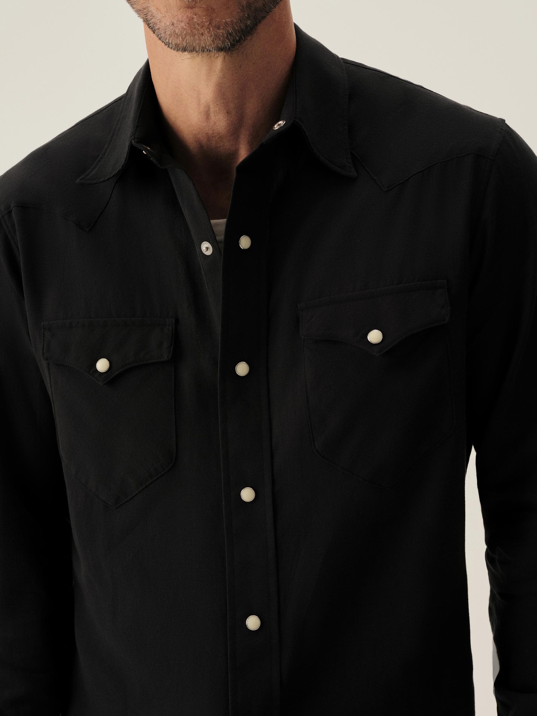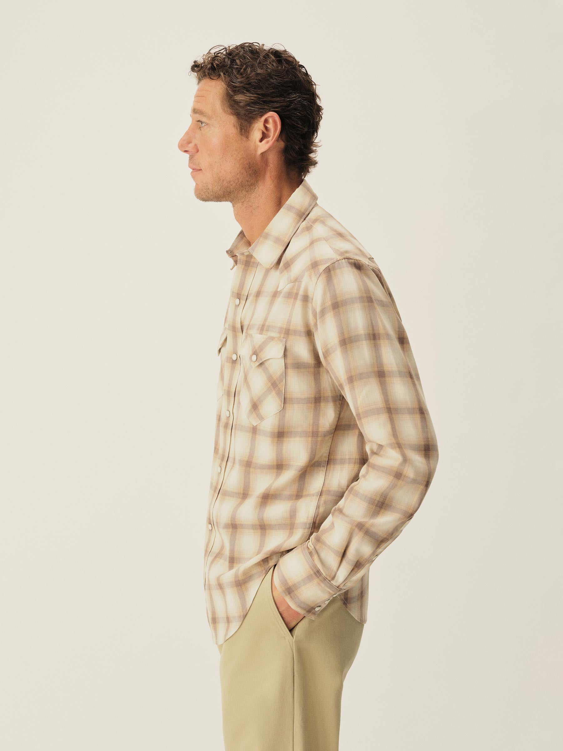 A classic fit, springweight cotton and wool blend western shirt with all of the classic cowboy details.