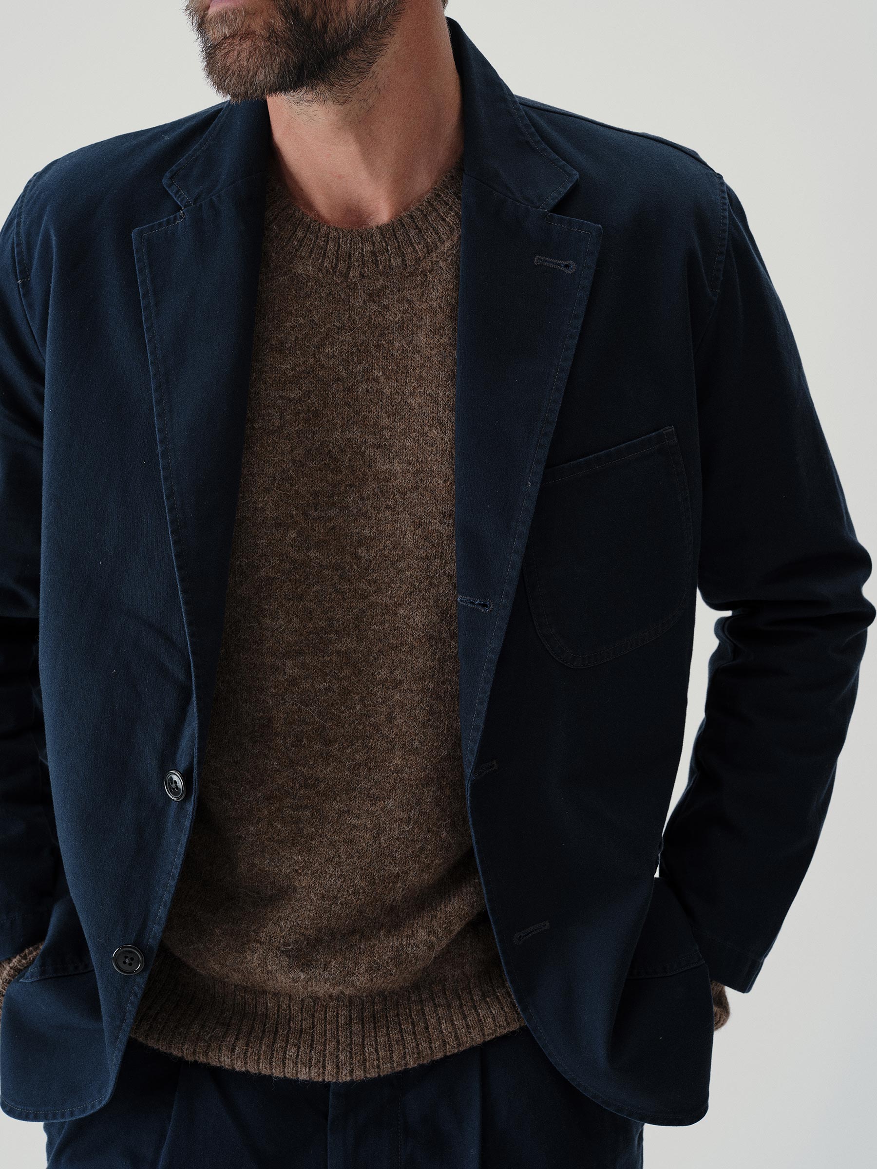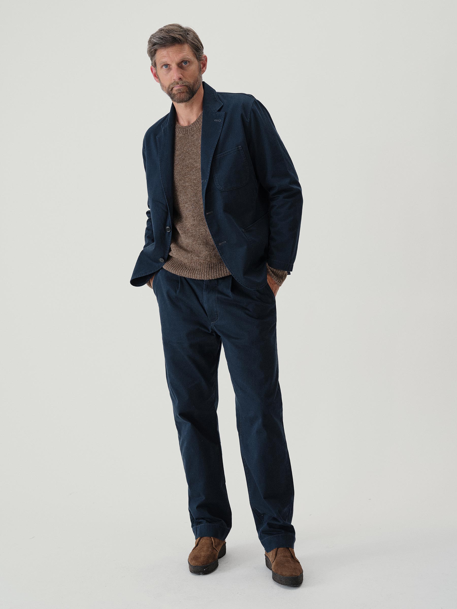 An easy tailored jacket designed to match our Carry-On Pant in the same blue sateen.