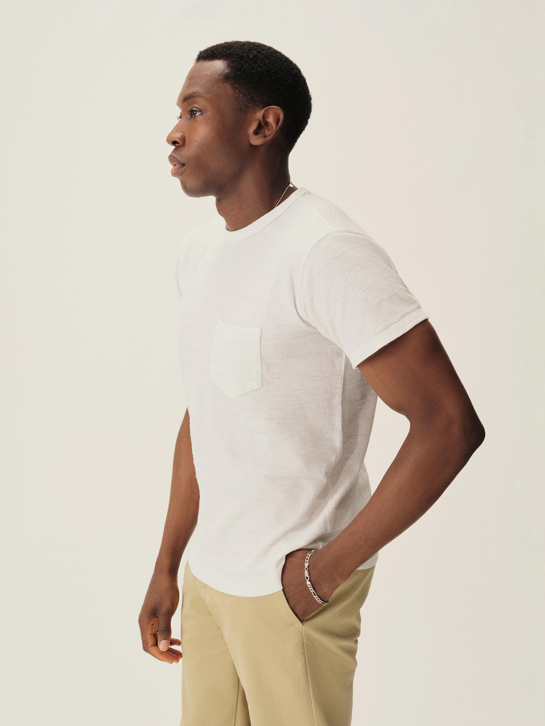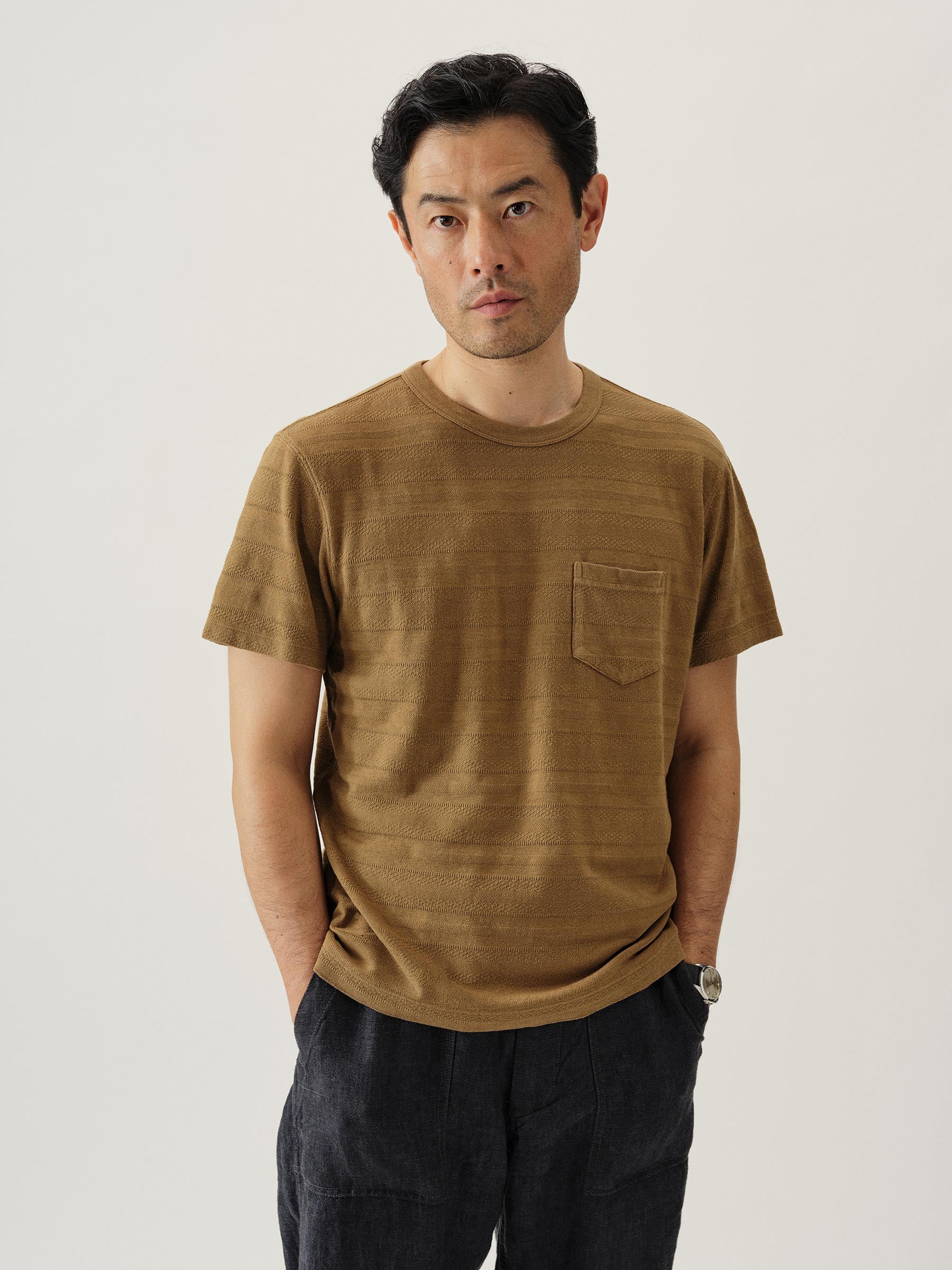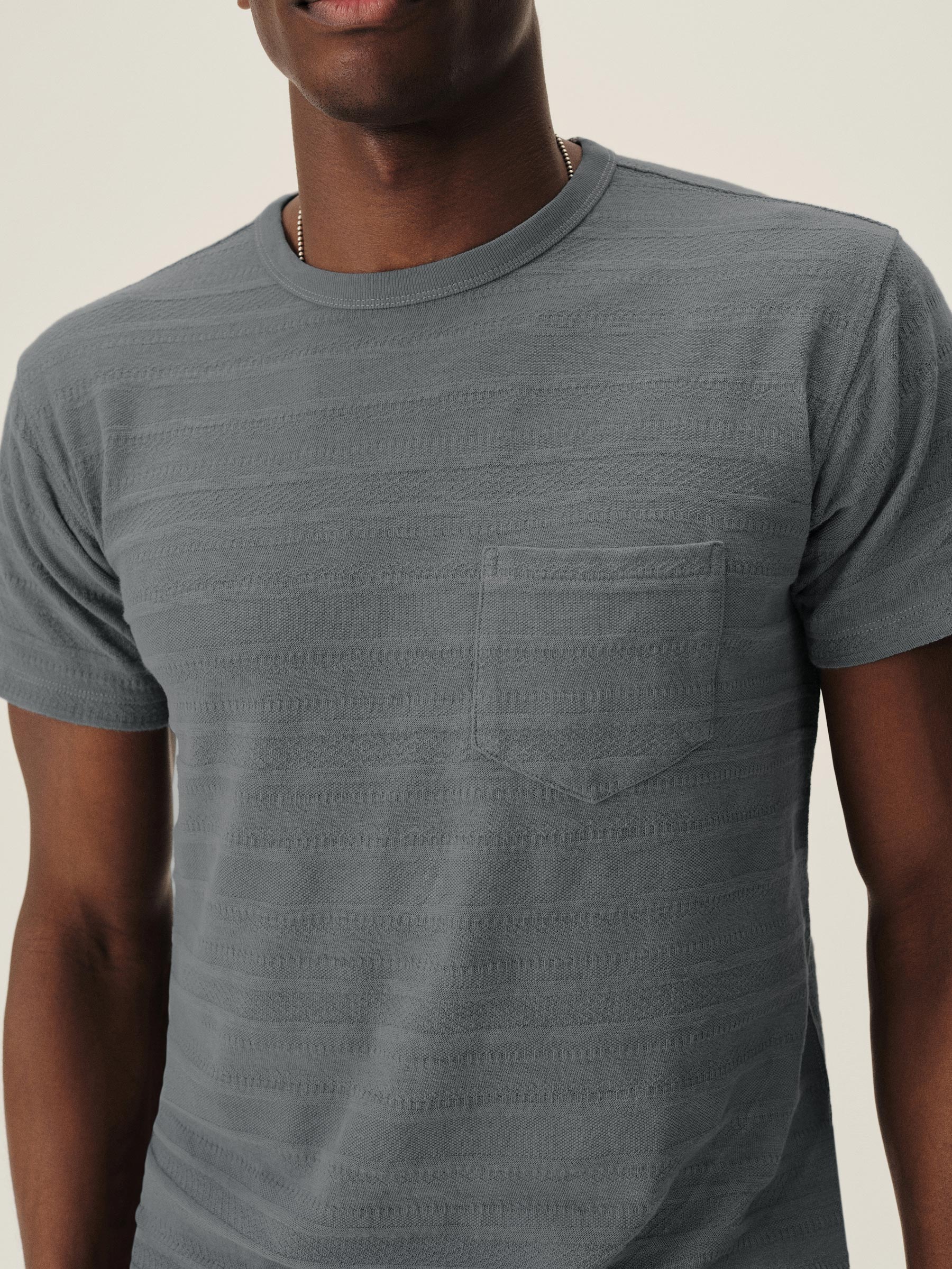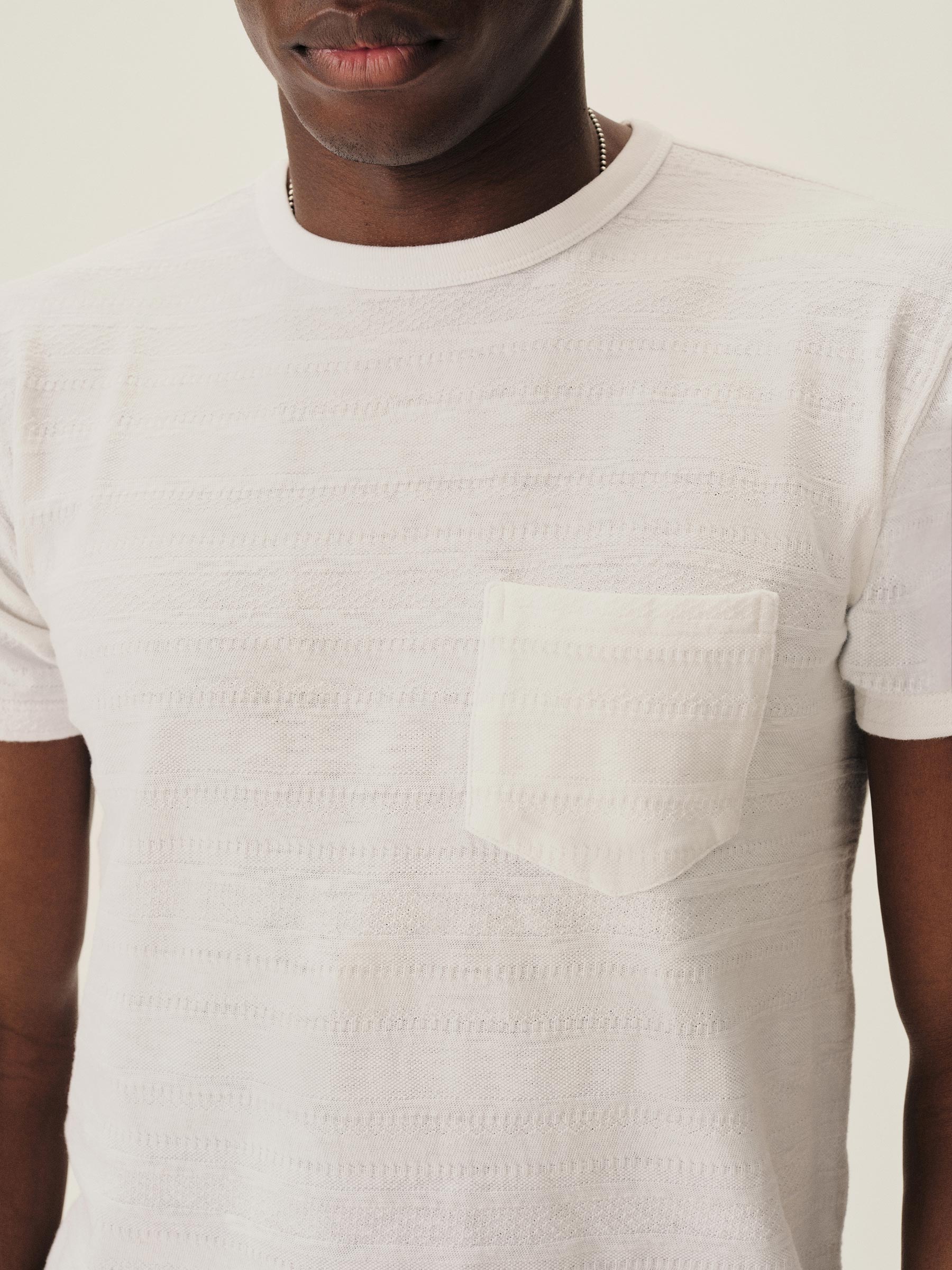 Classic fit pocket tee in midweight cotton with tonal jacquard patterning.
