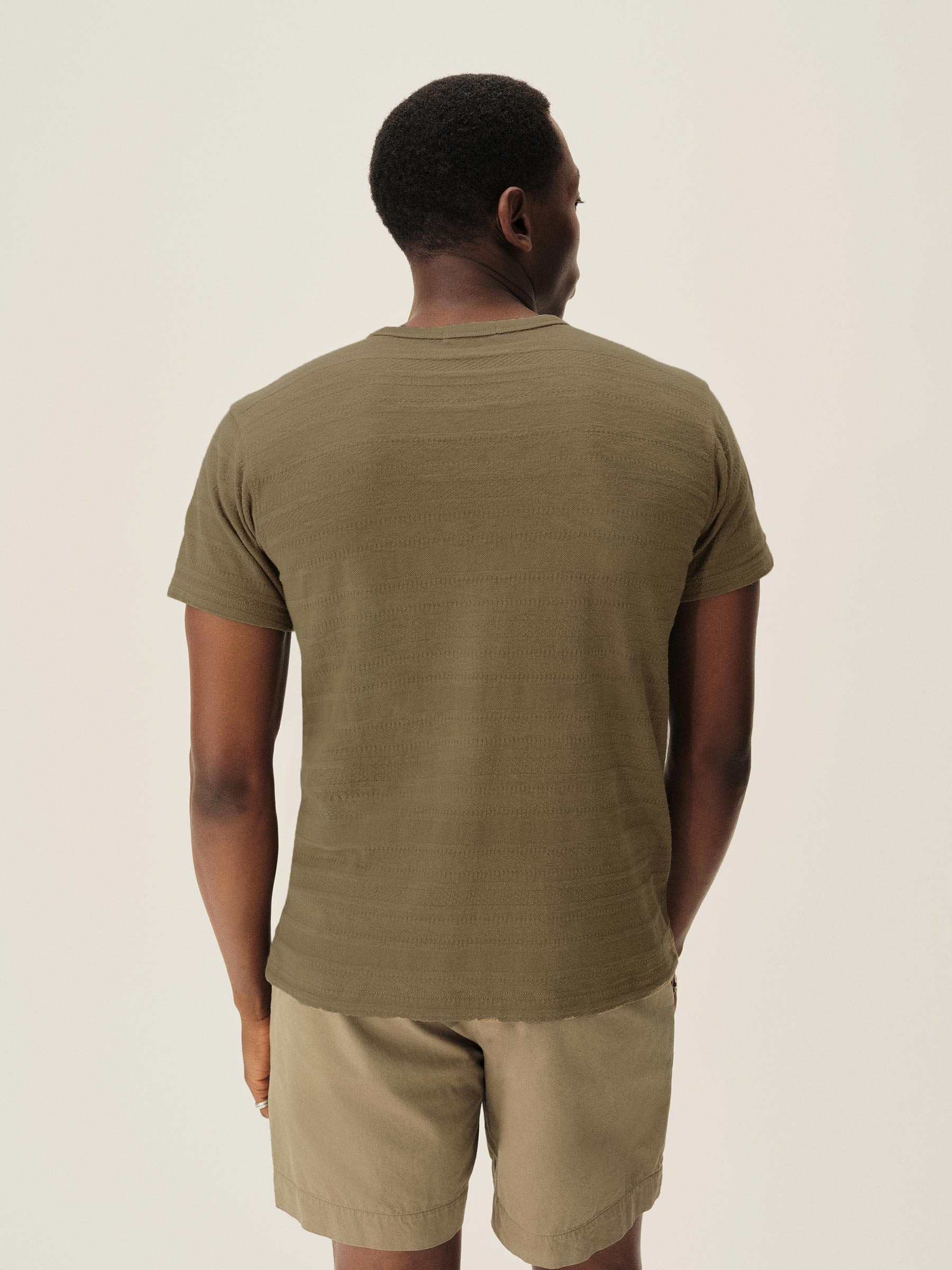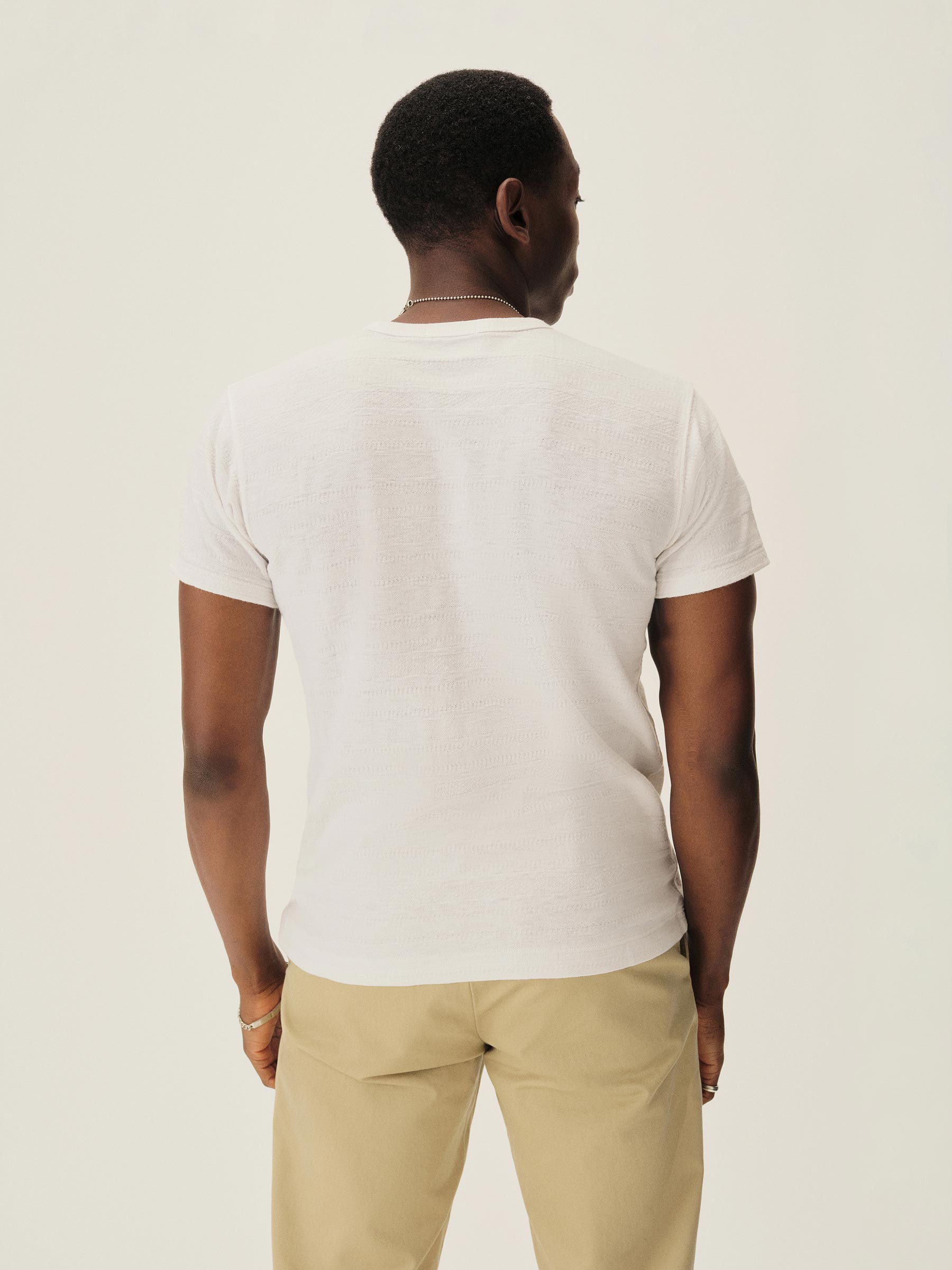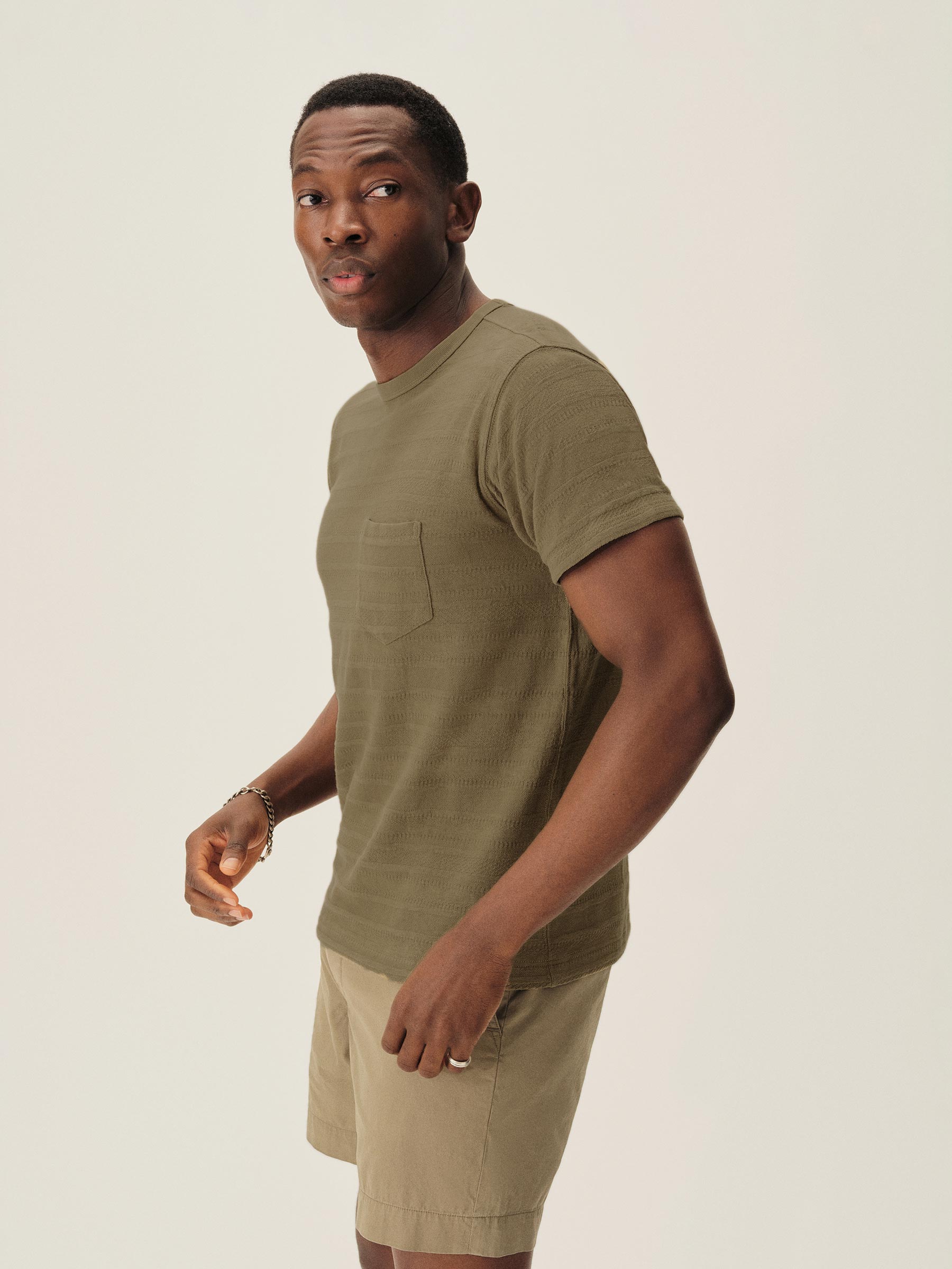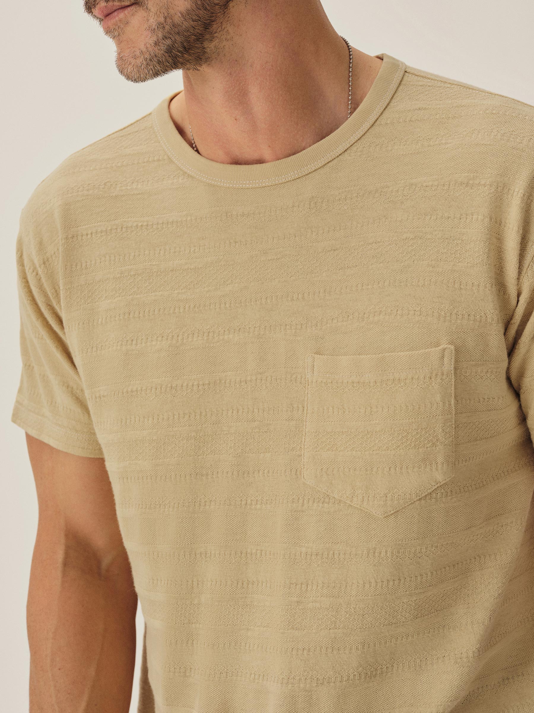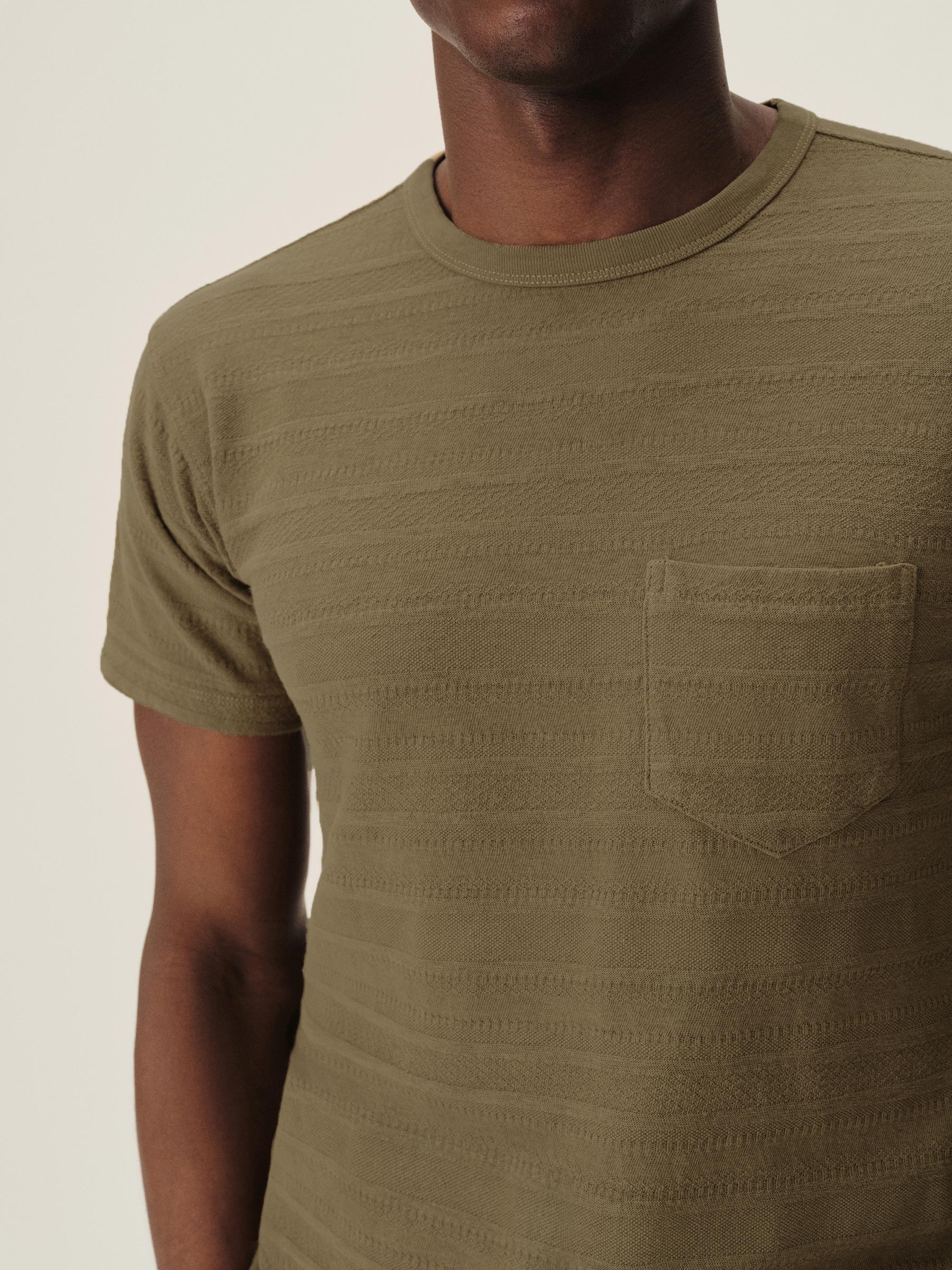 Classic fit pocket tee in midweight cotton with tonal jacquard patterning.