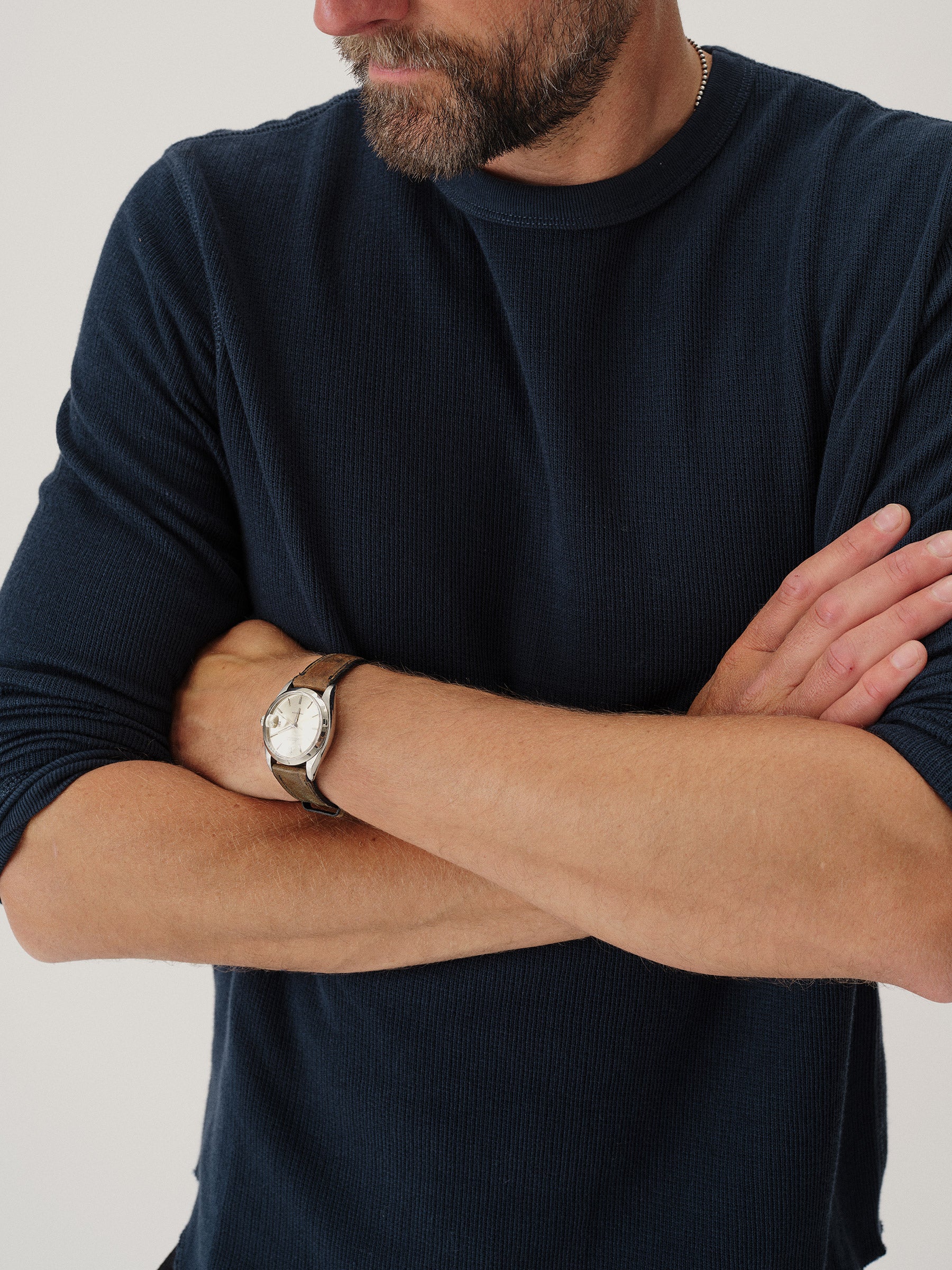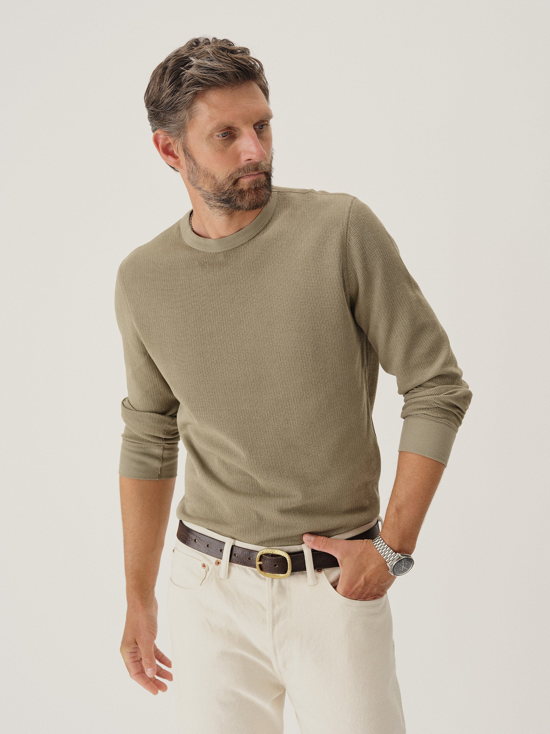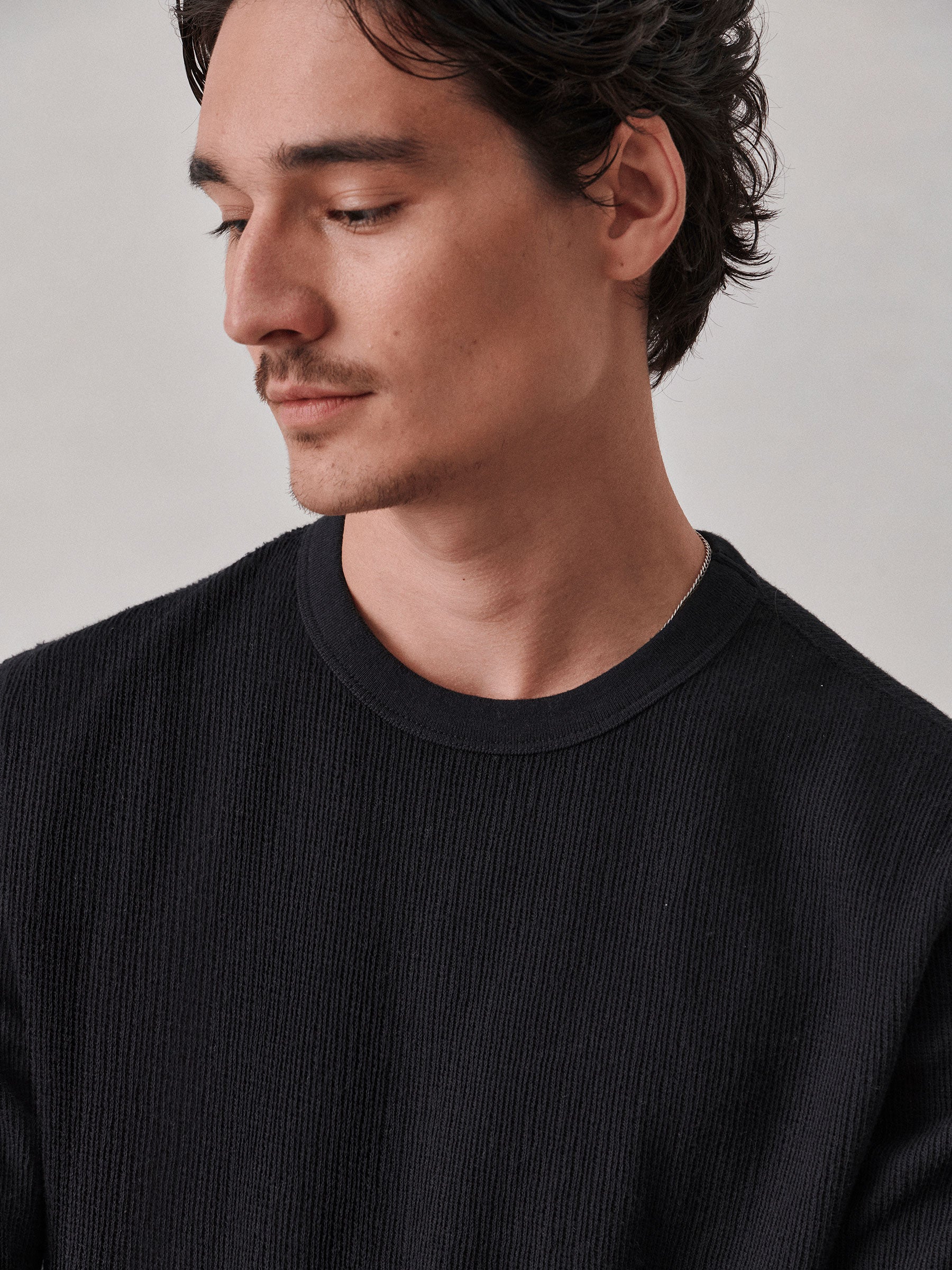 A staple layering piece in waffle-knit cotton with a smooth back for comfort and ease.