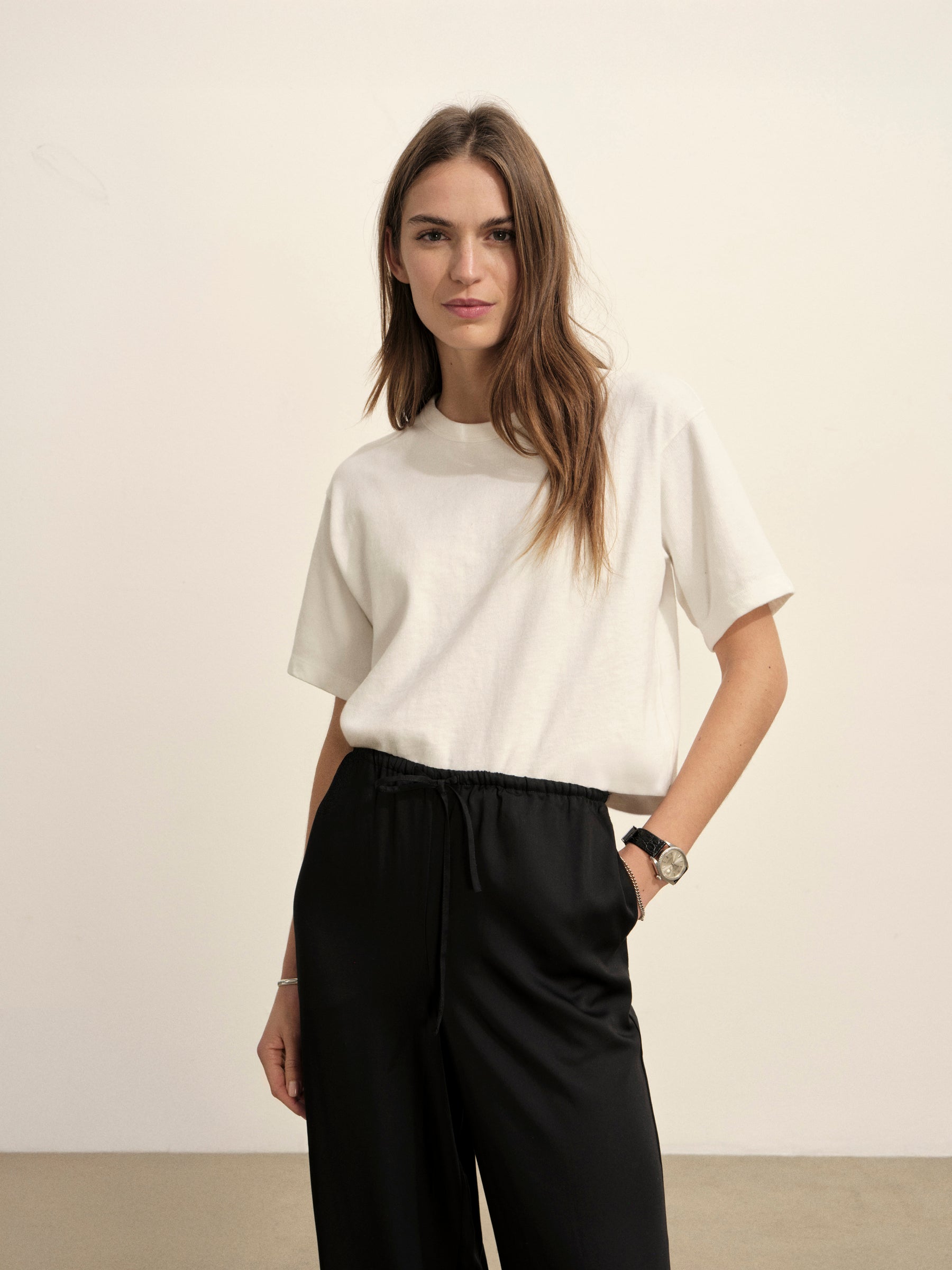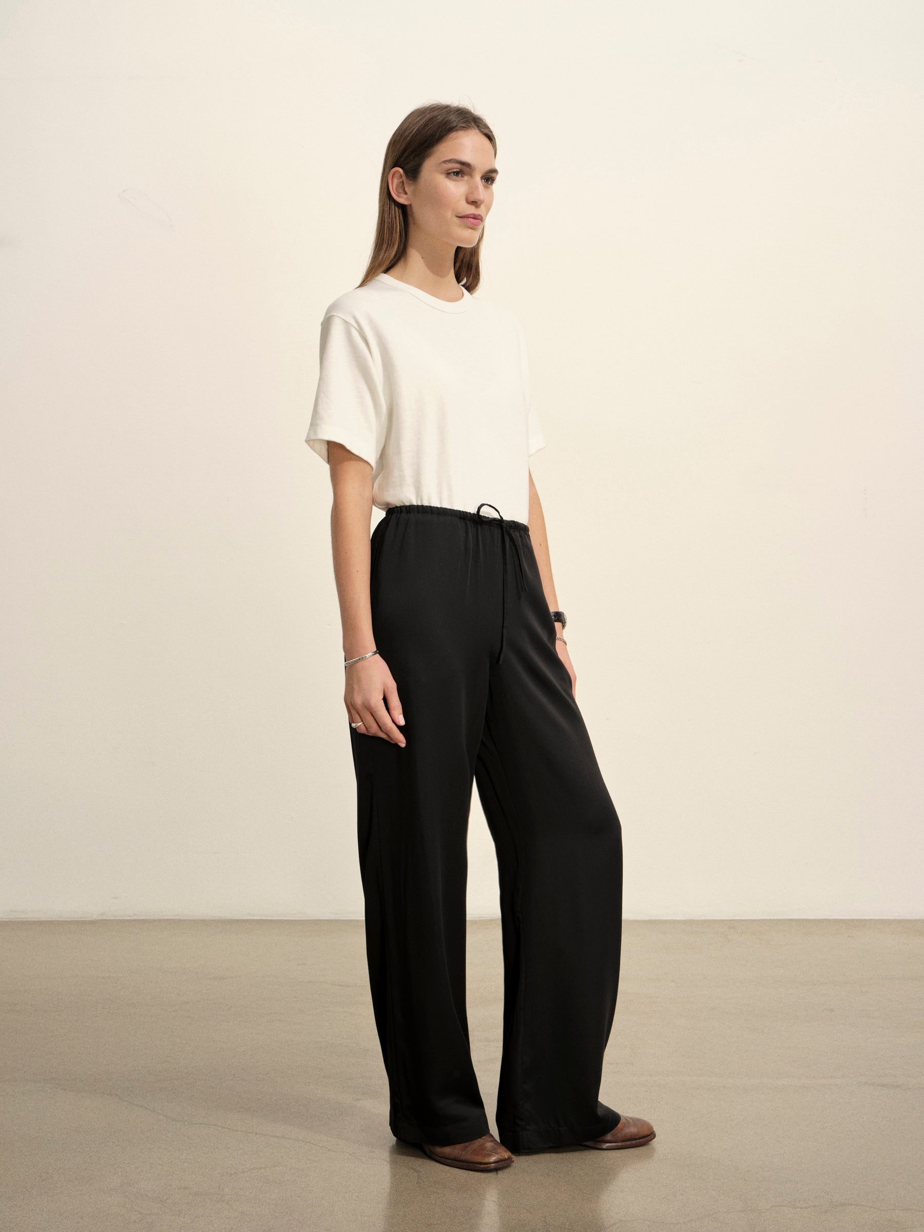Relaxed and easy pull-on pant made from silky rayon modal.