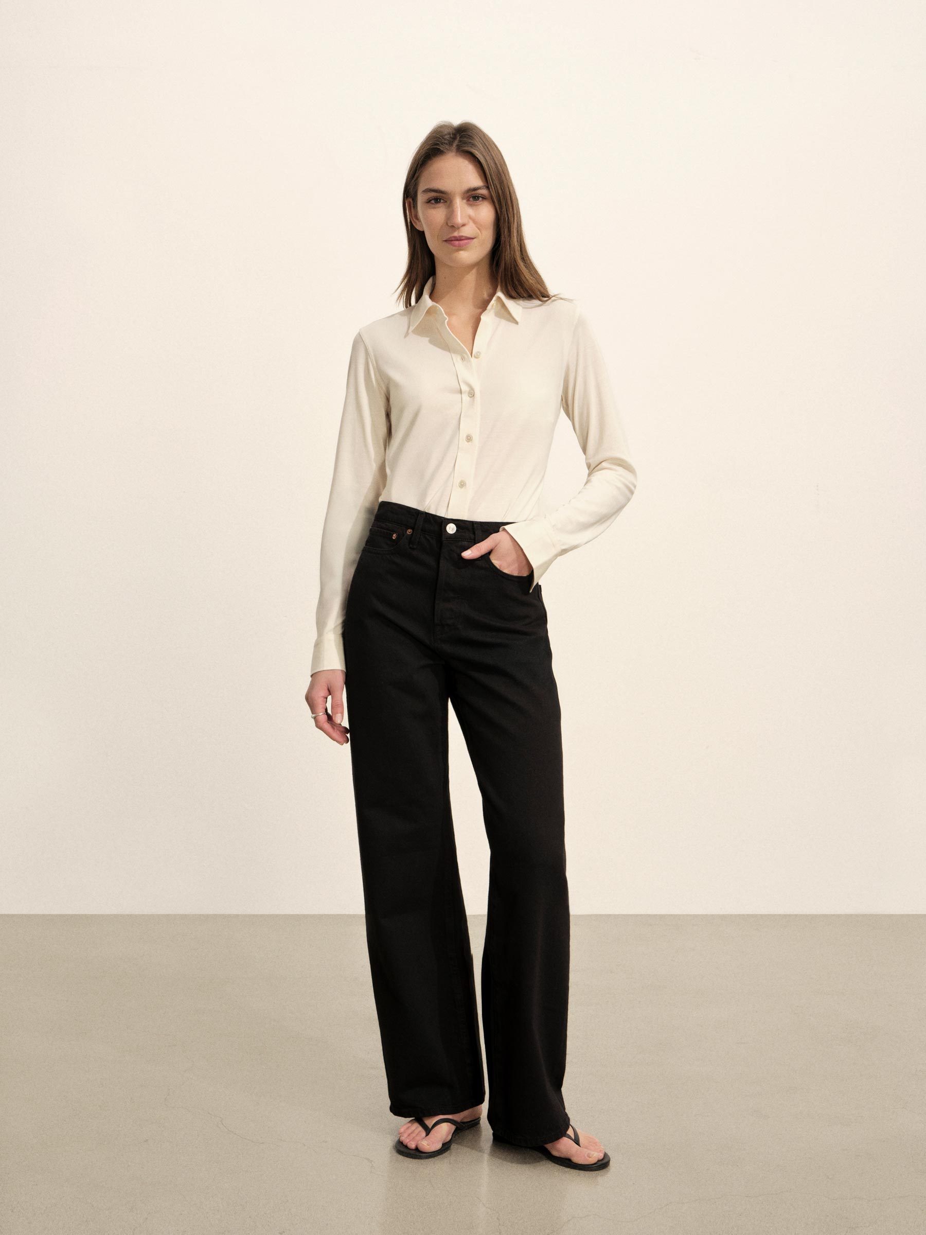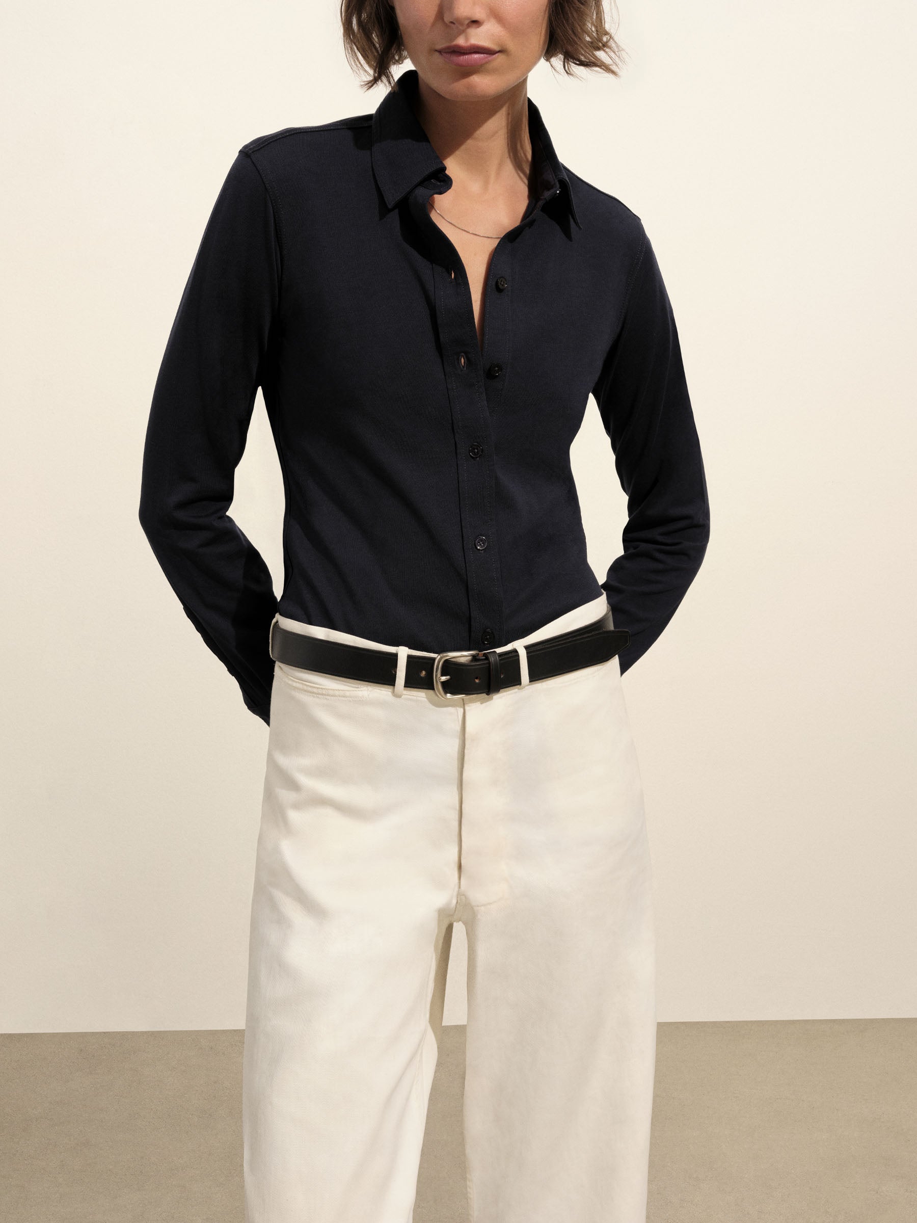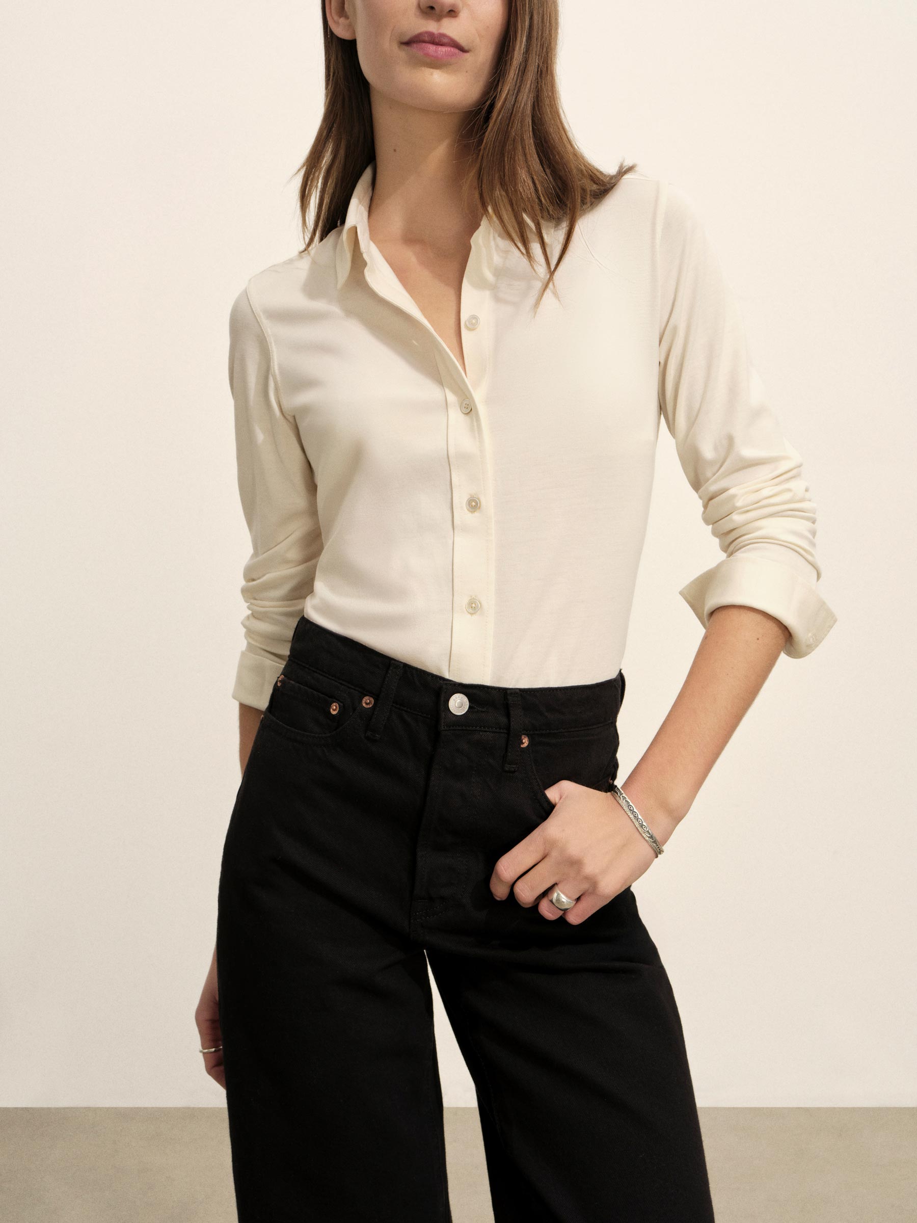 Relaxed, slim-fit, jersey-knit button-down crafted from a blend of EcoCell and Pima cotton.