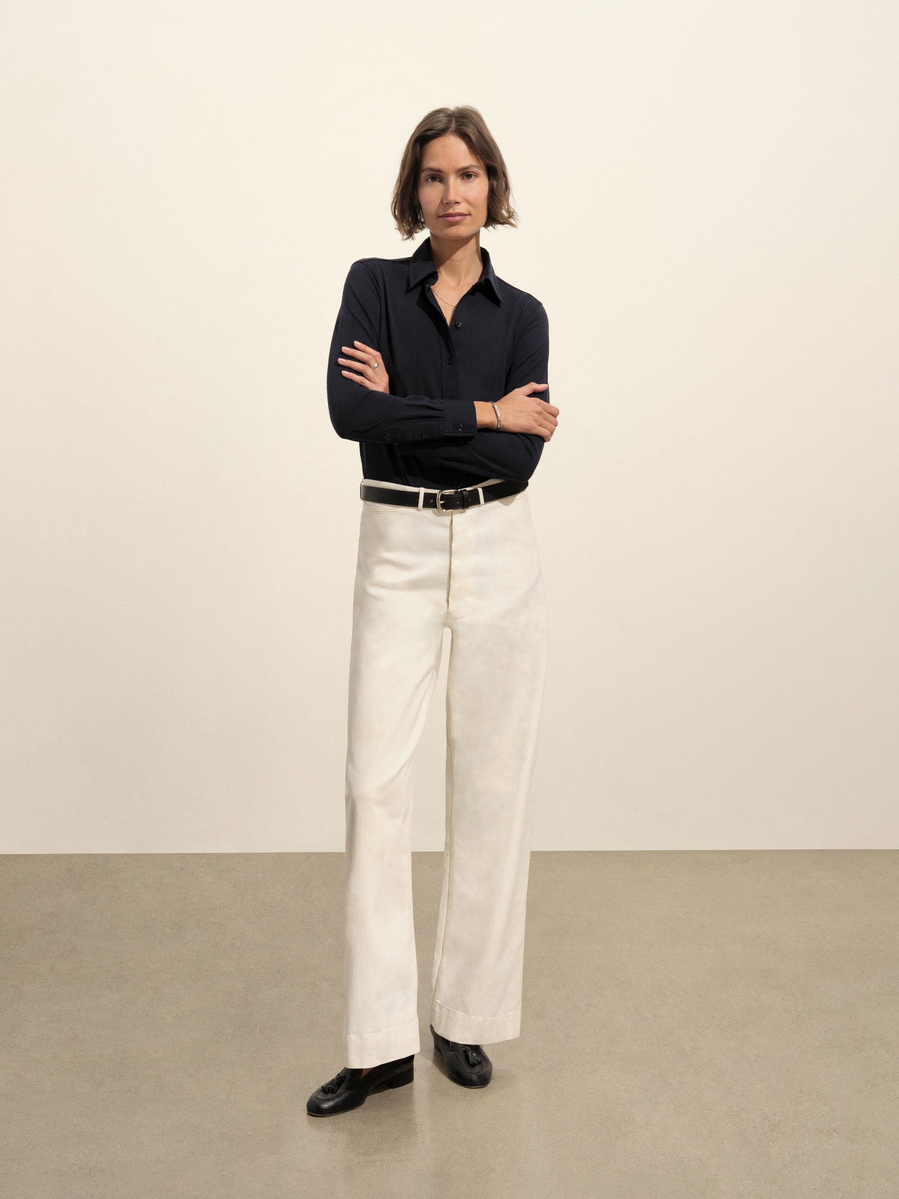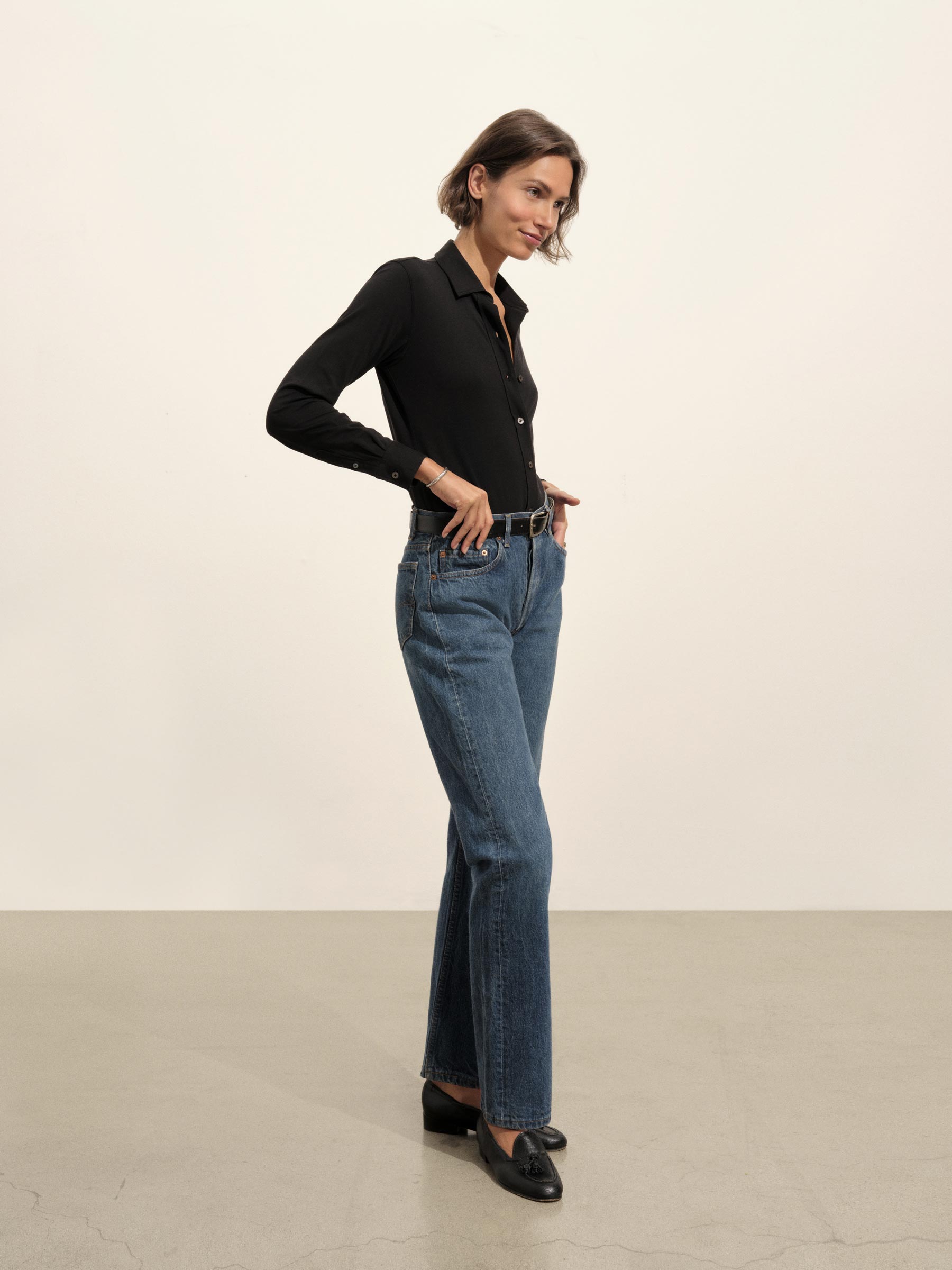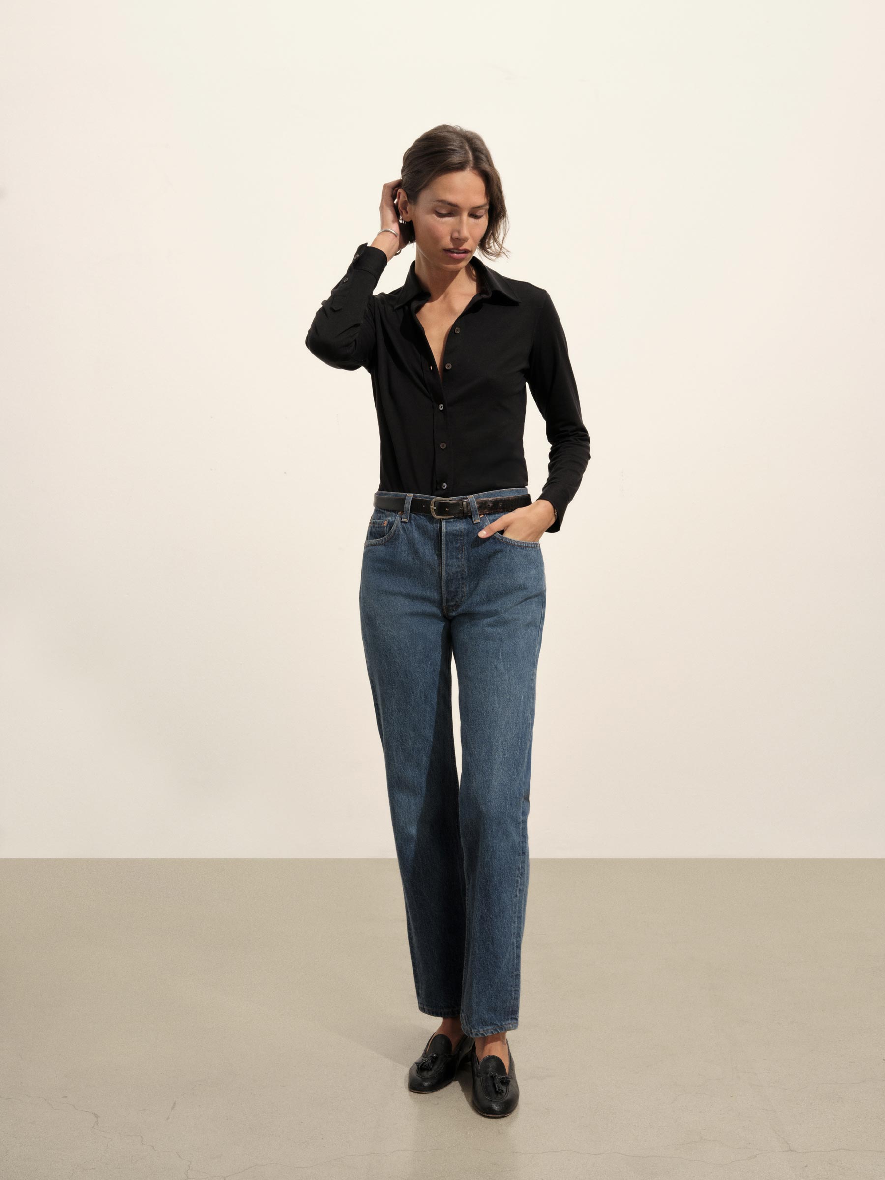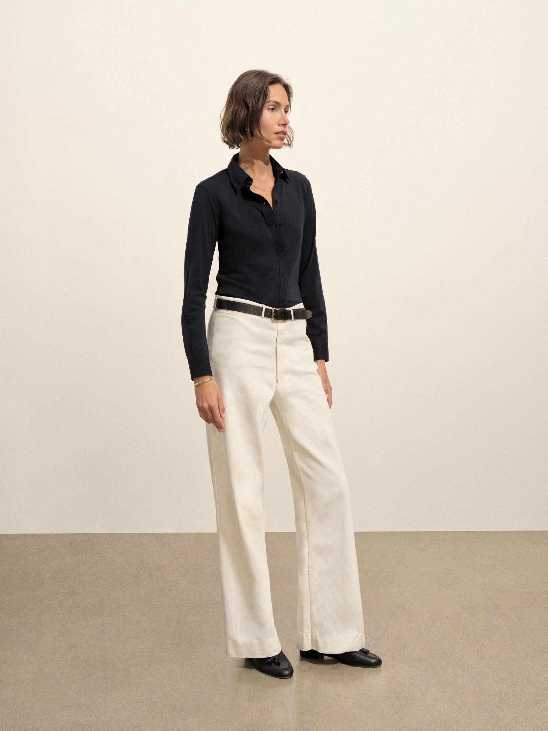 Relaxed, slim-fit, jersey-knit button-down crafted from a blend of EcoCell and Pima cotton.