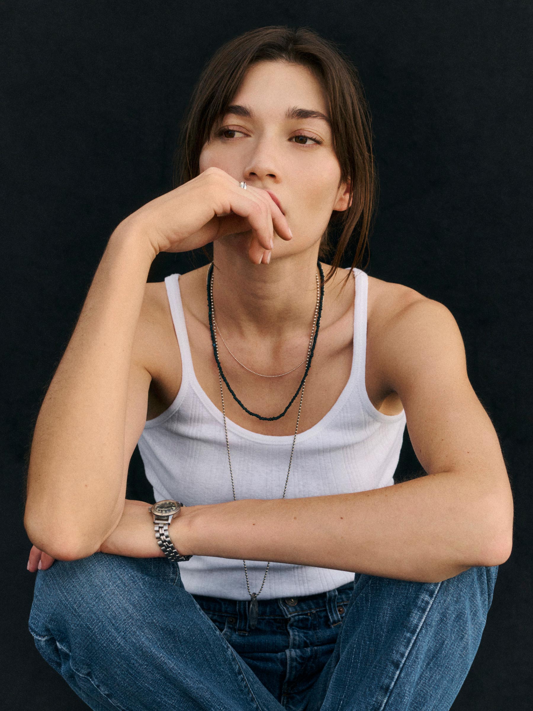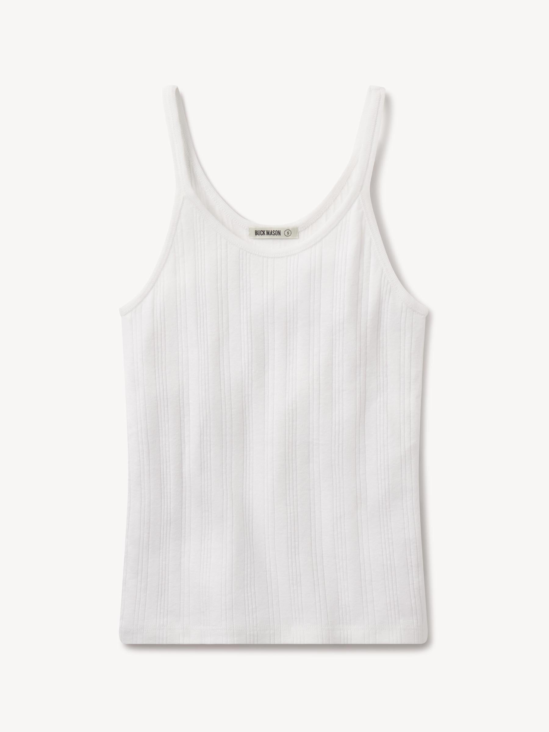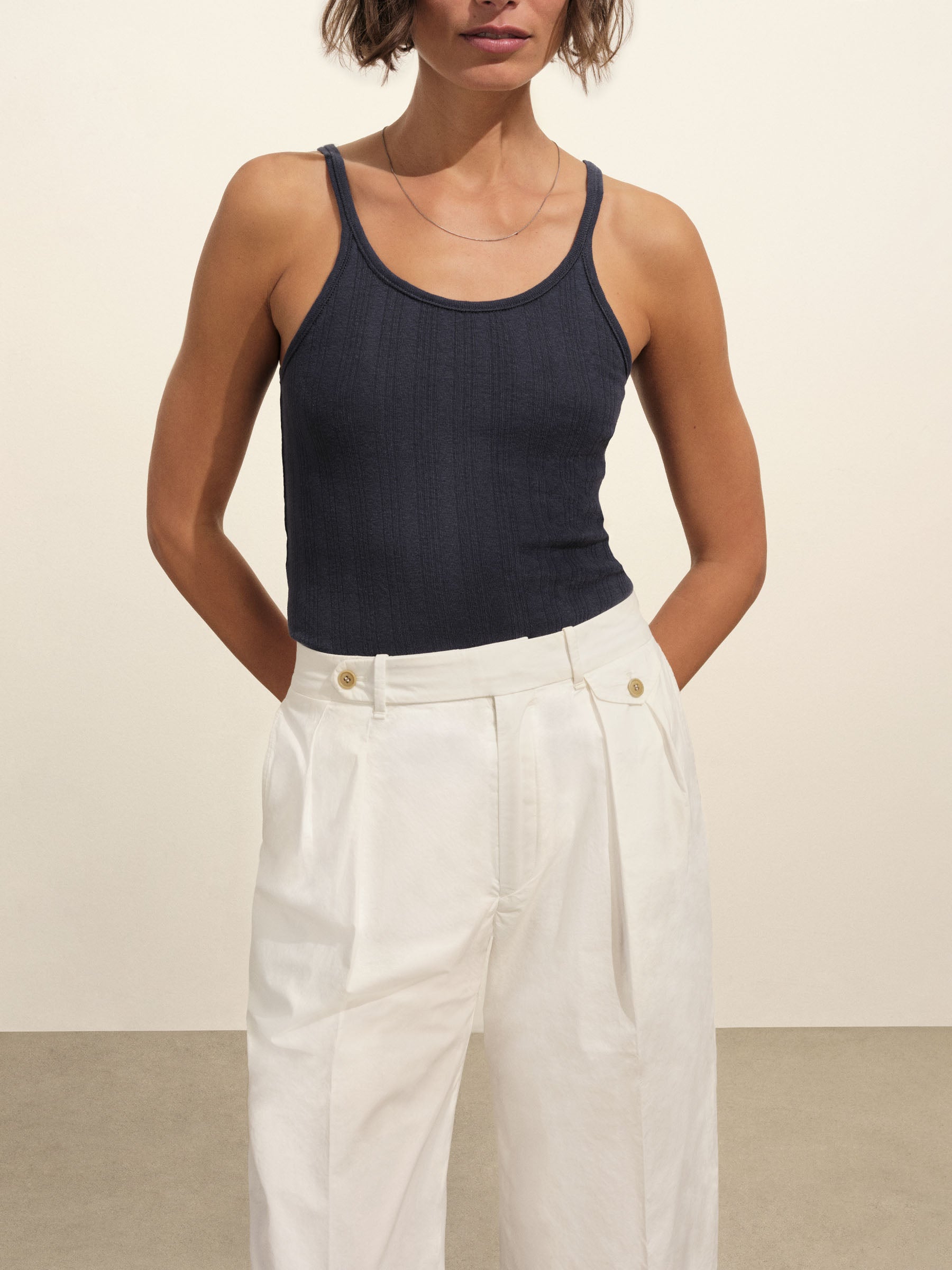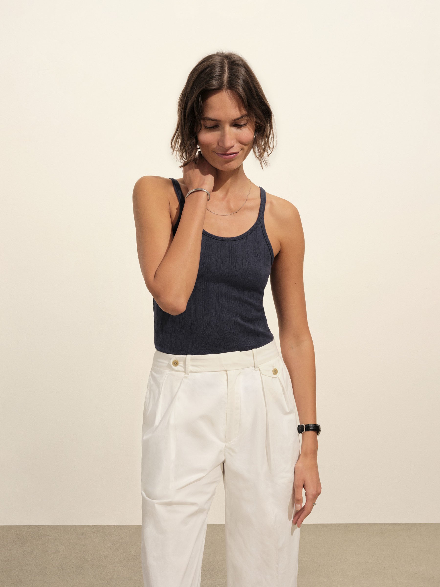 Slim-fit, vintage-inspired base tank made from a textured blend of 60% recycled cotton and 40% cotton.