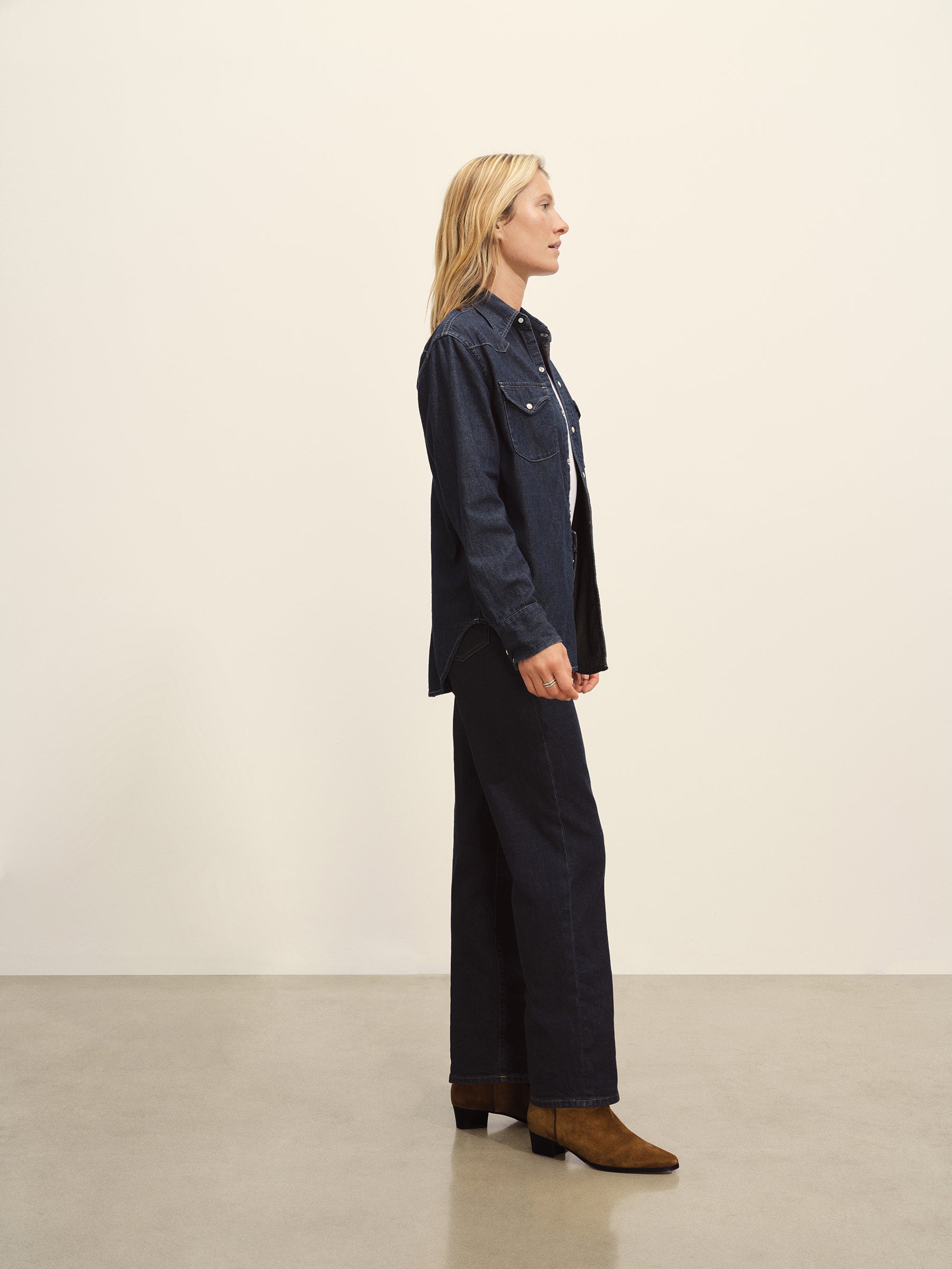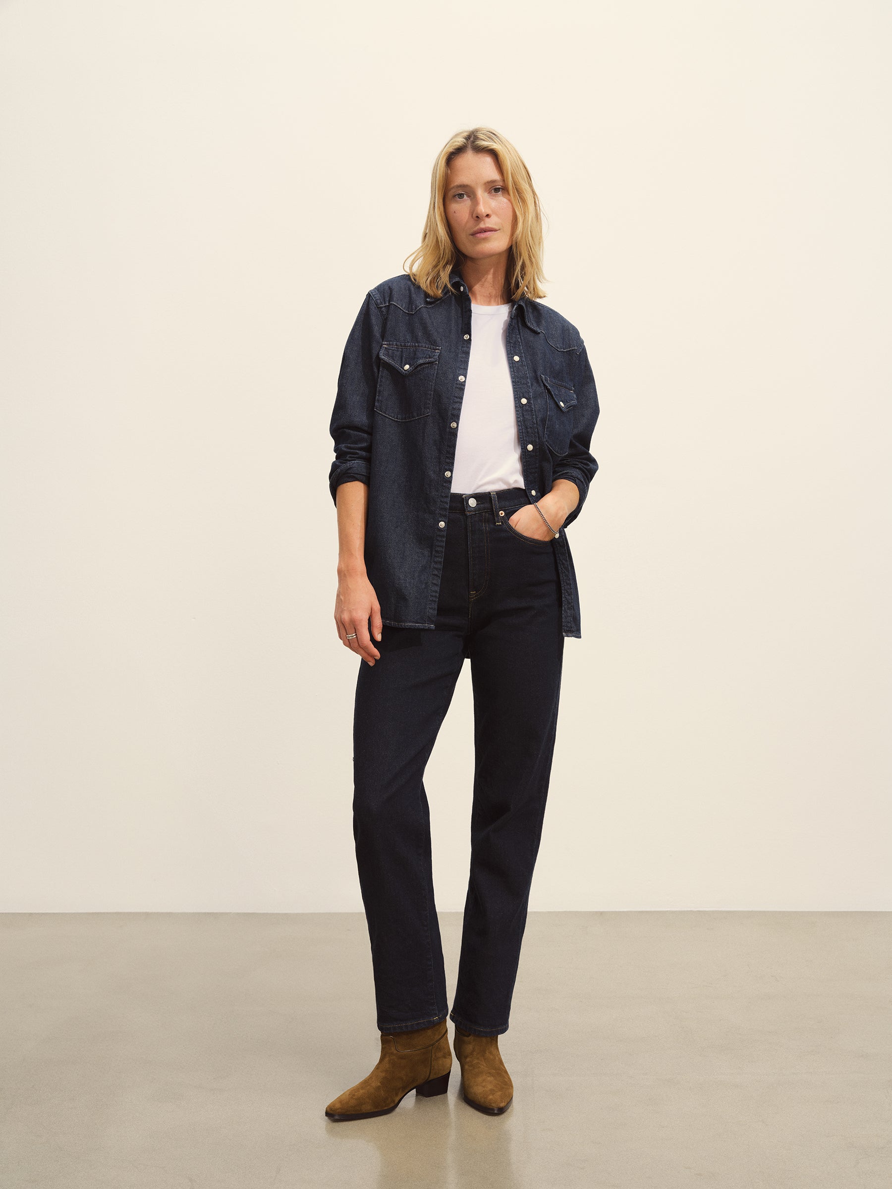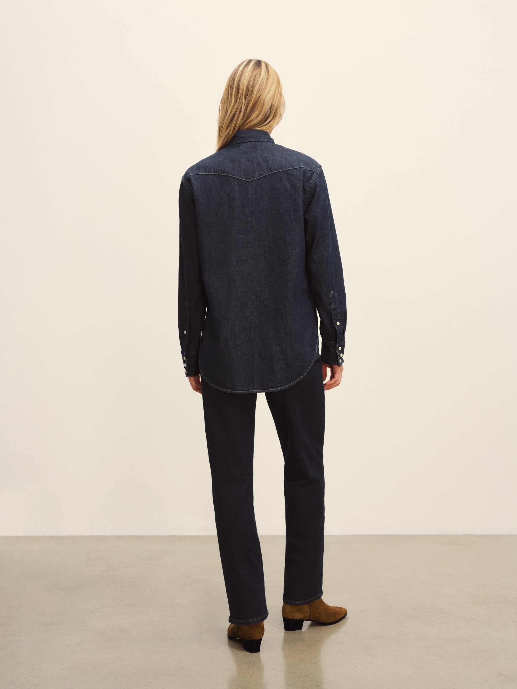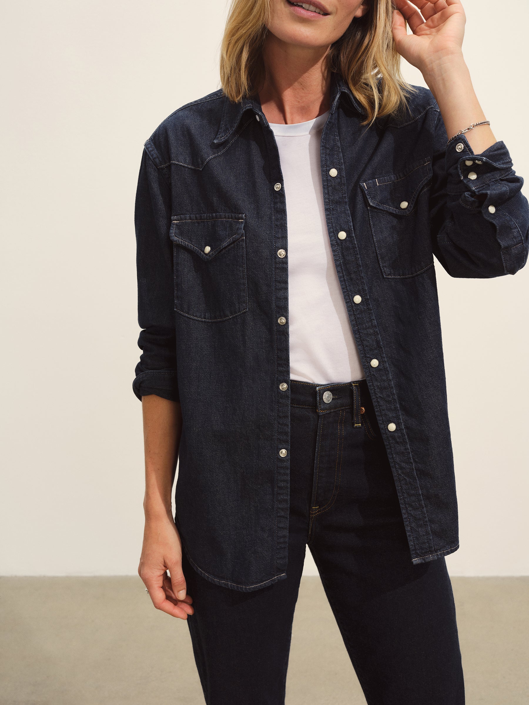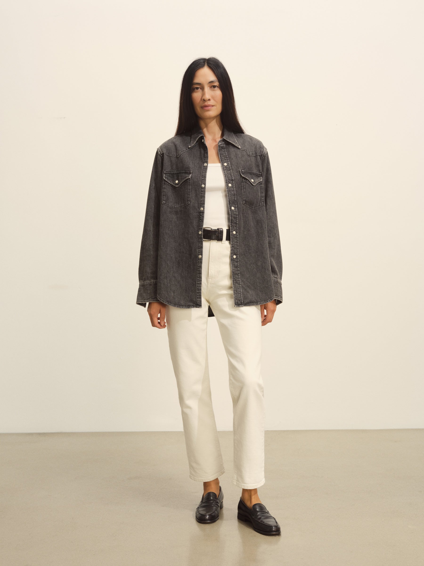 A textured, drapey 8 oz western shirt with utility-style details and an easy-to-slip on fit.