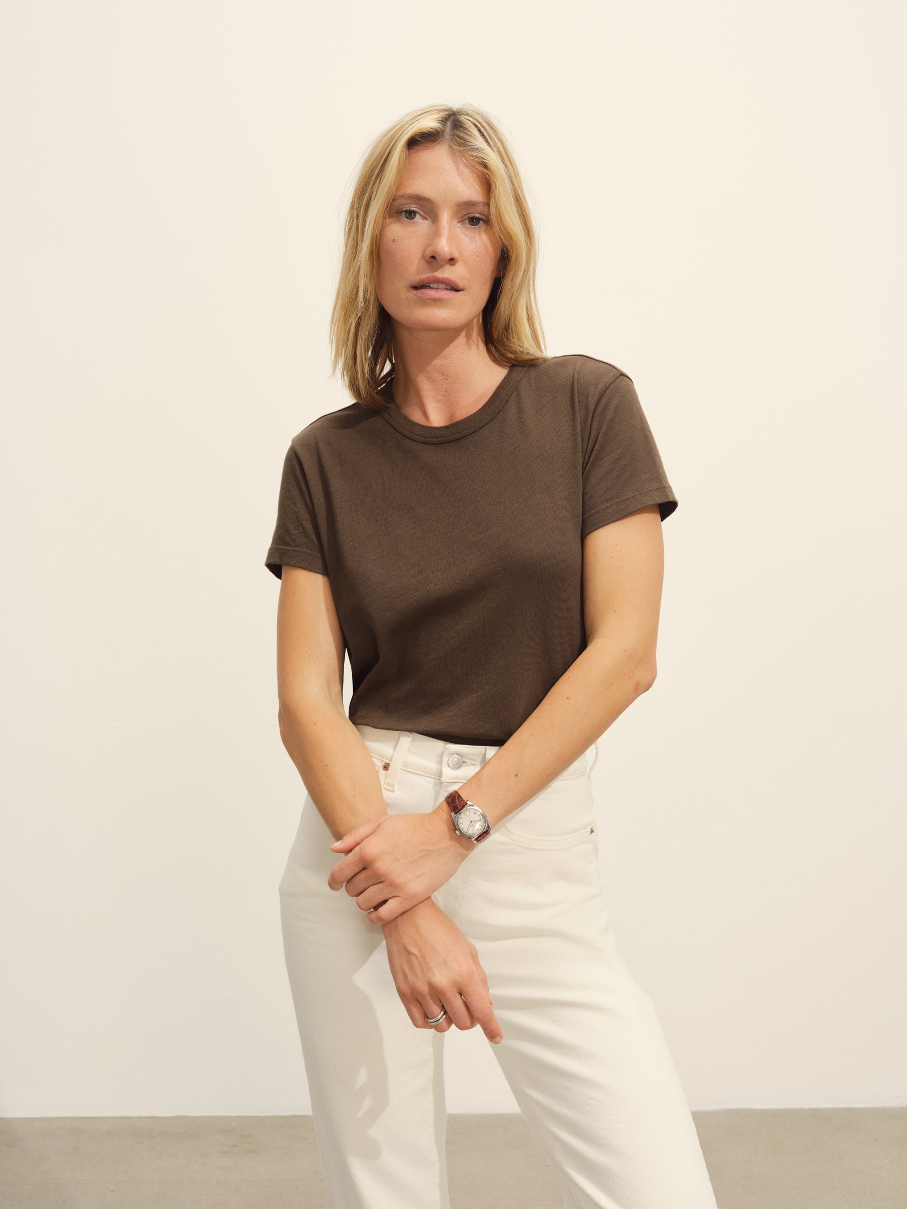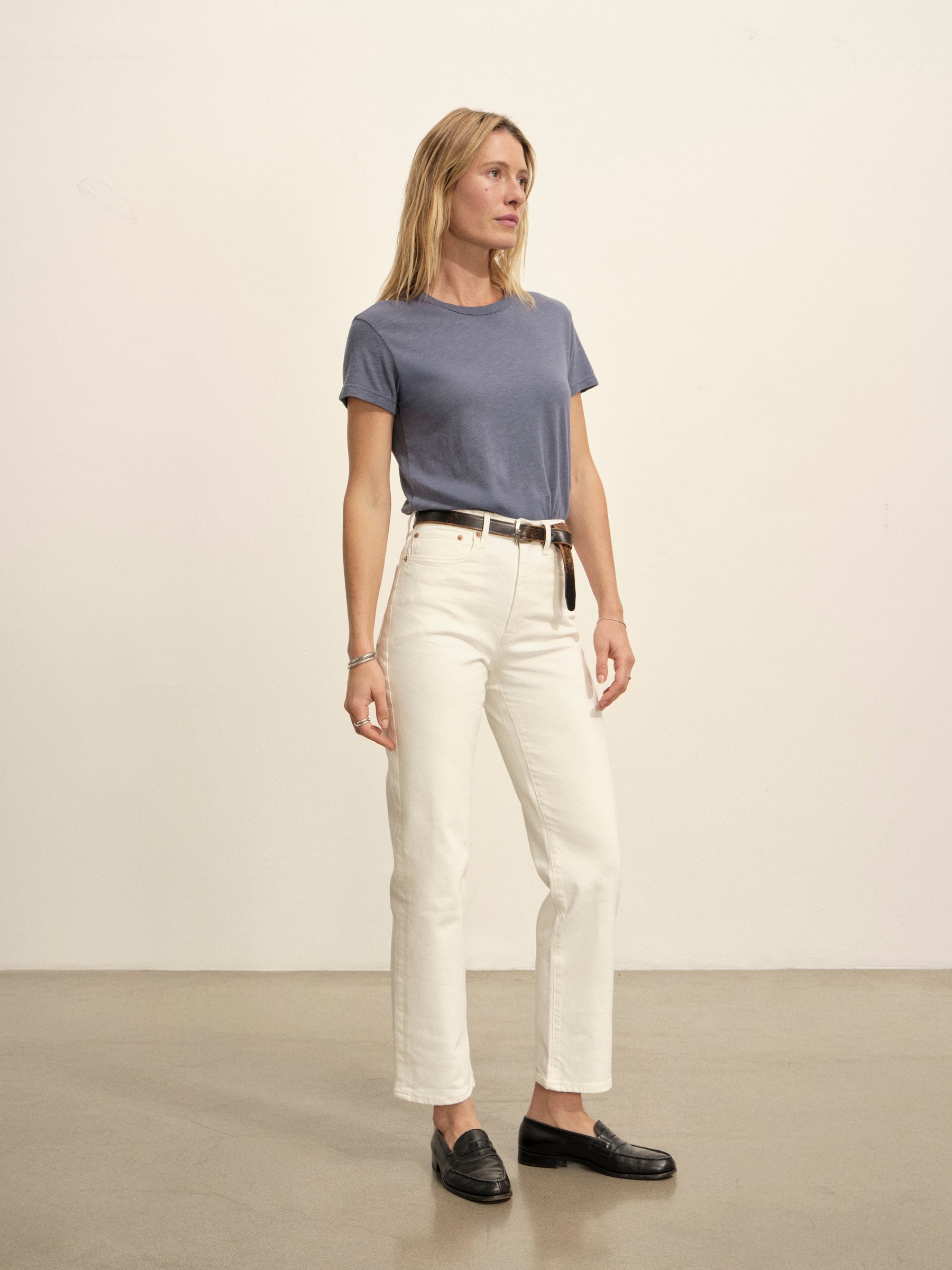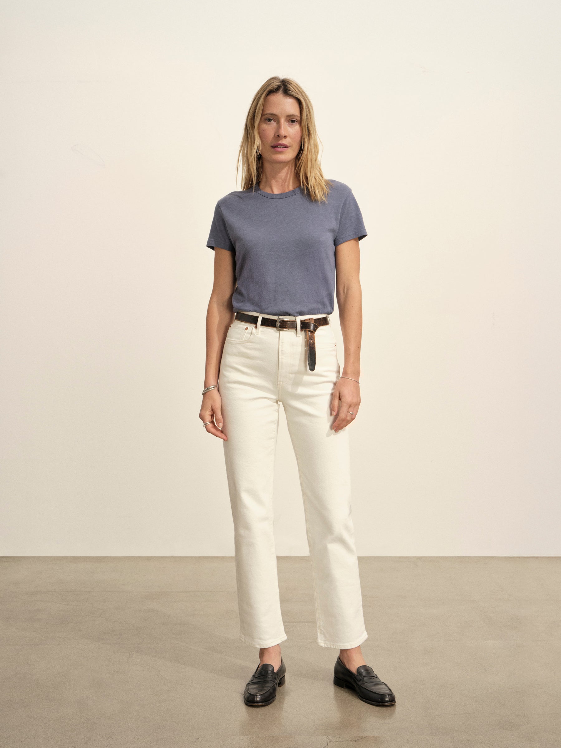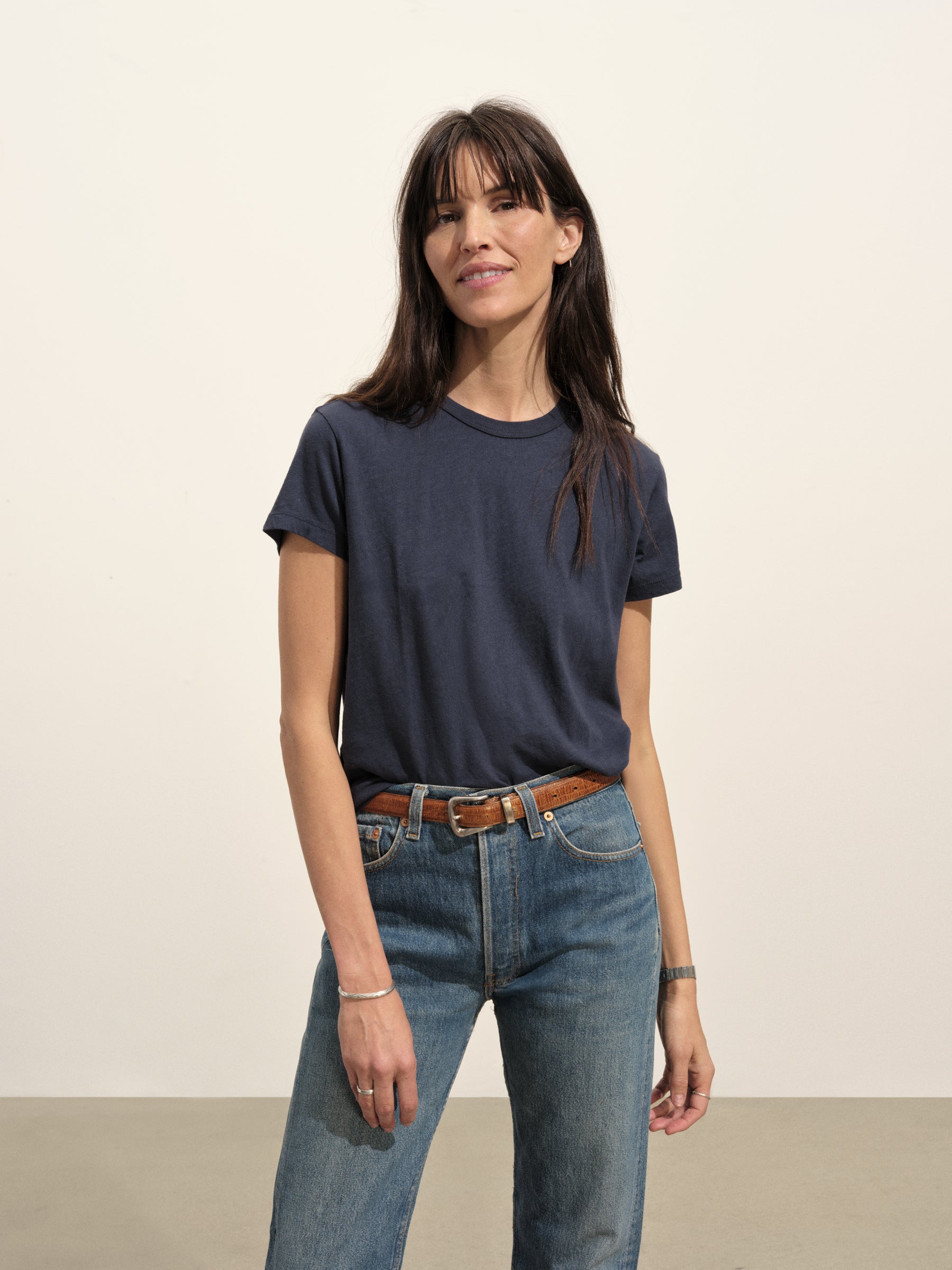 Classic fit short sleeve crewneck tee with a straight hem, cut from a lightweight slub cotton.