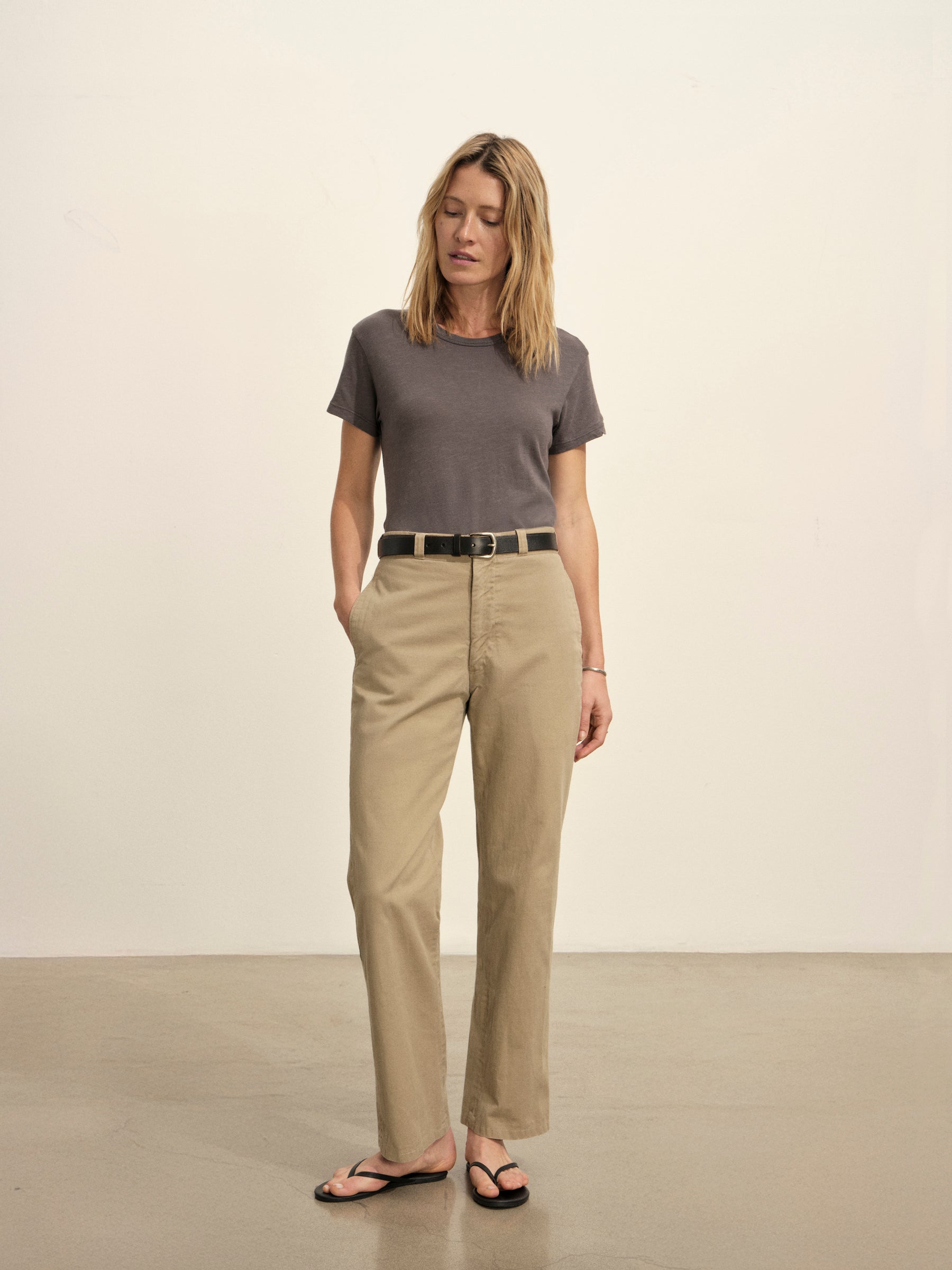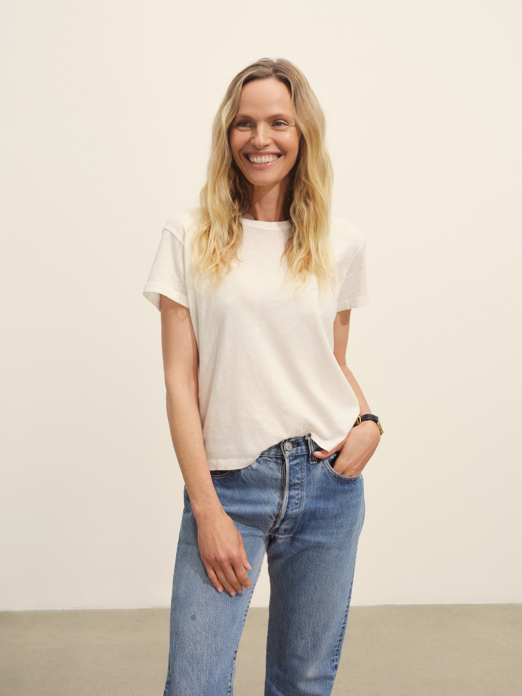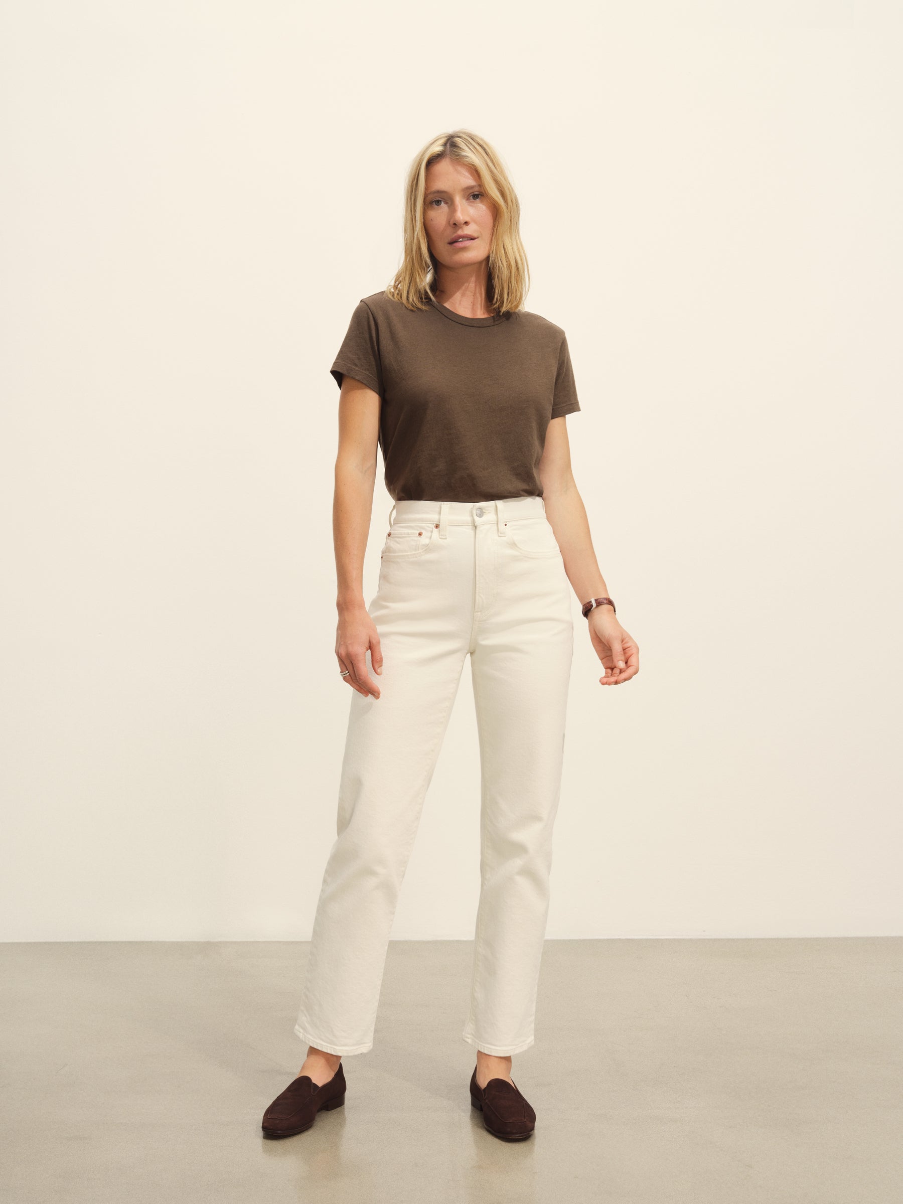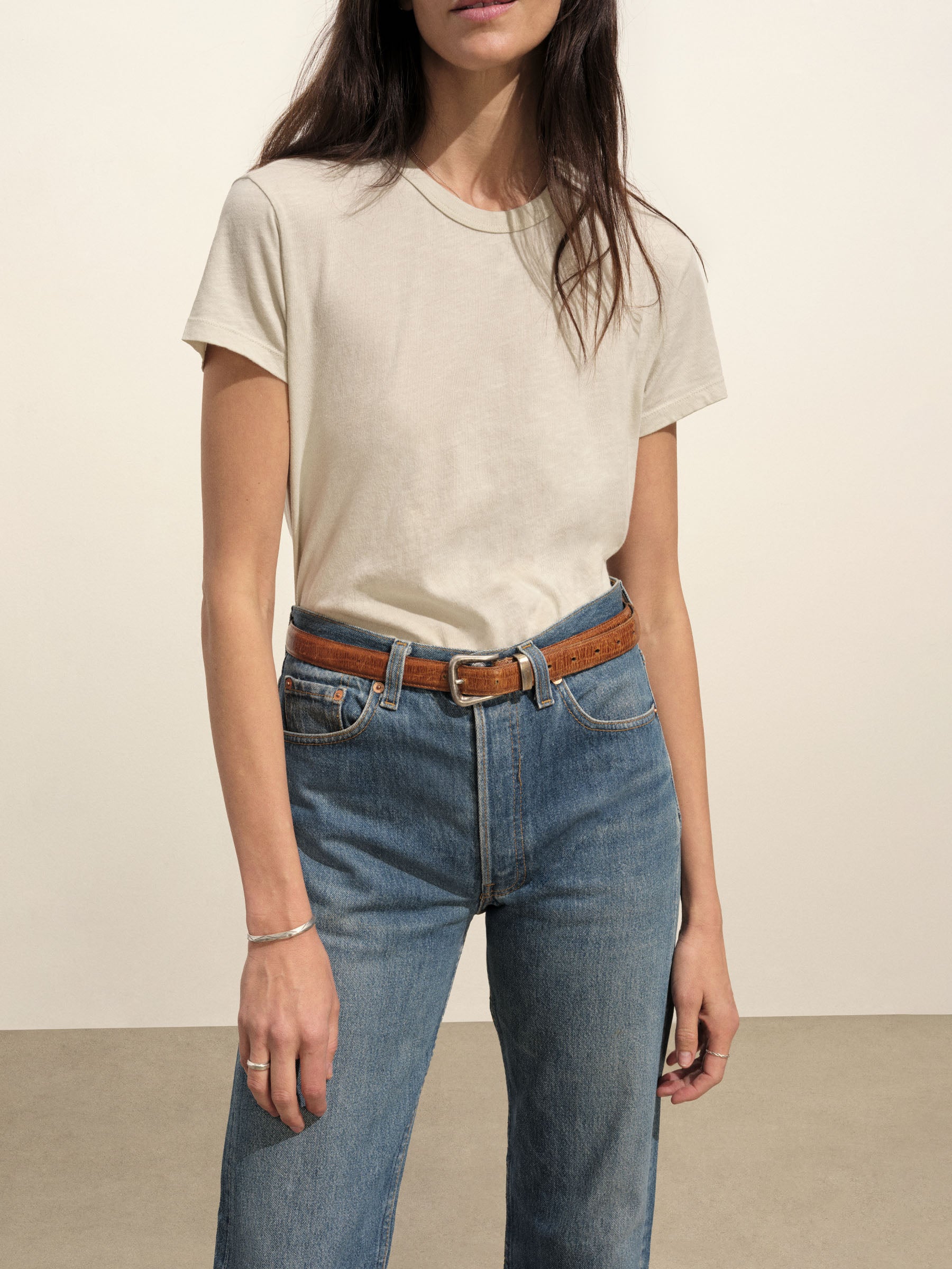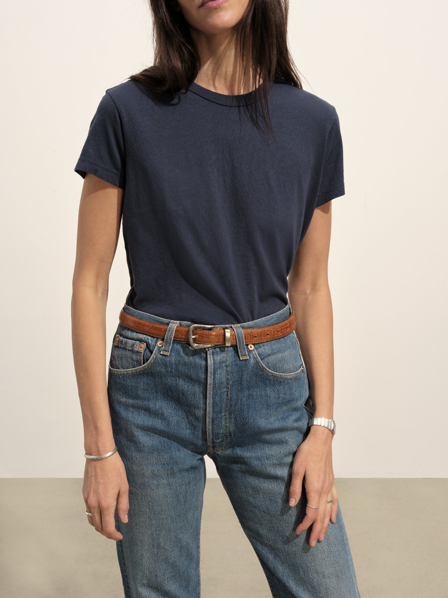 Classic fit short sleeve crewneck tee with a straight hem, cut from a lightweight slub cotton.