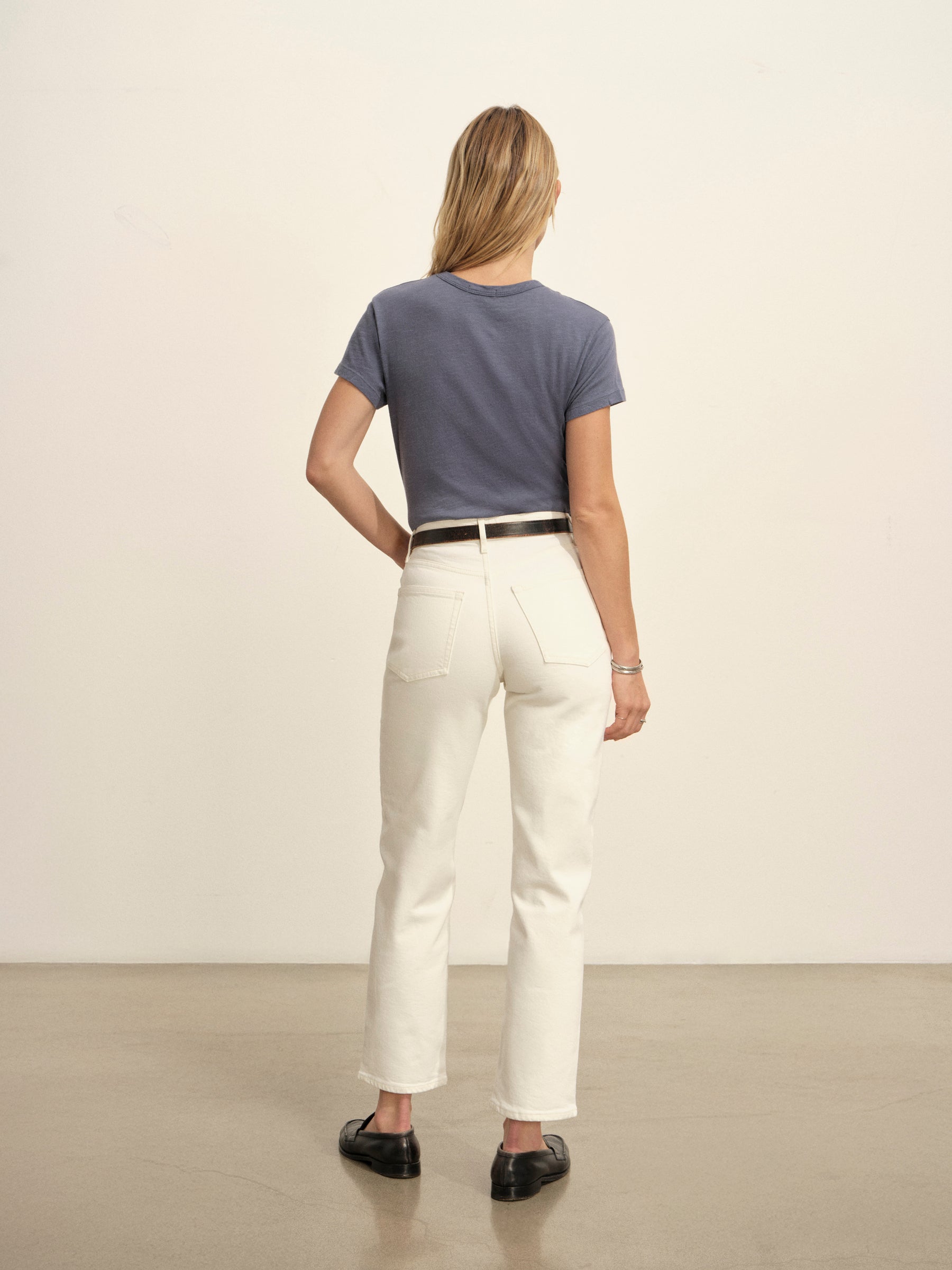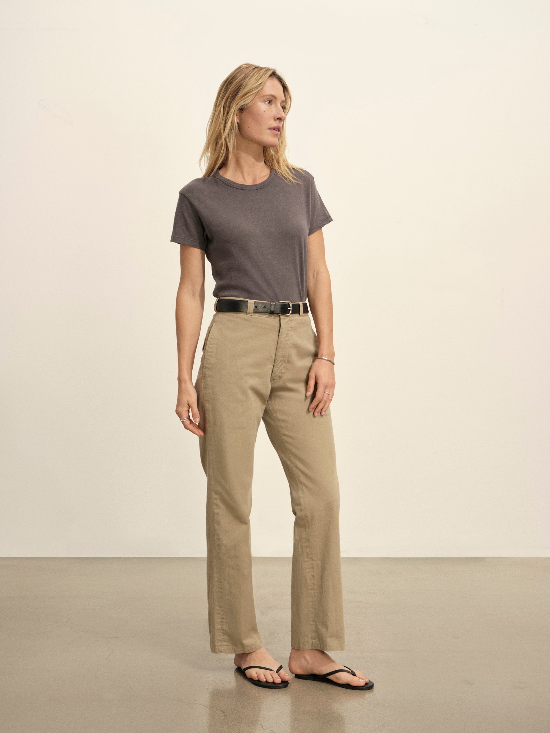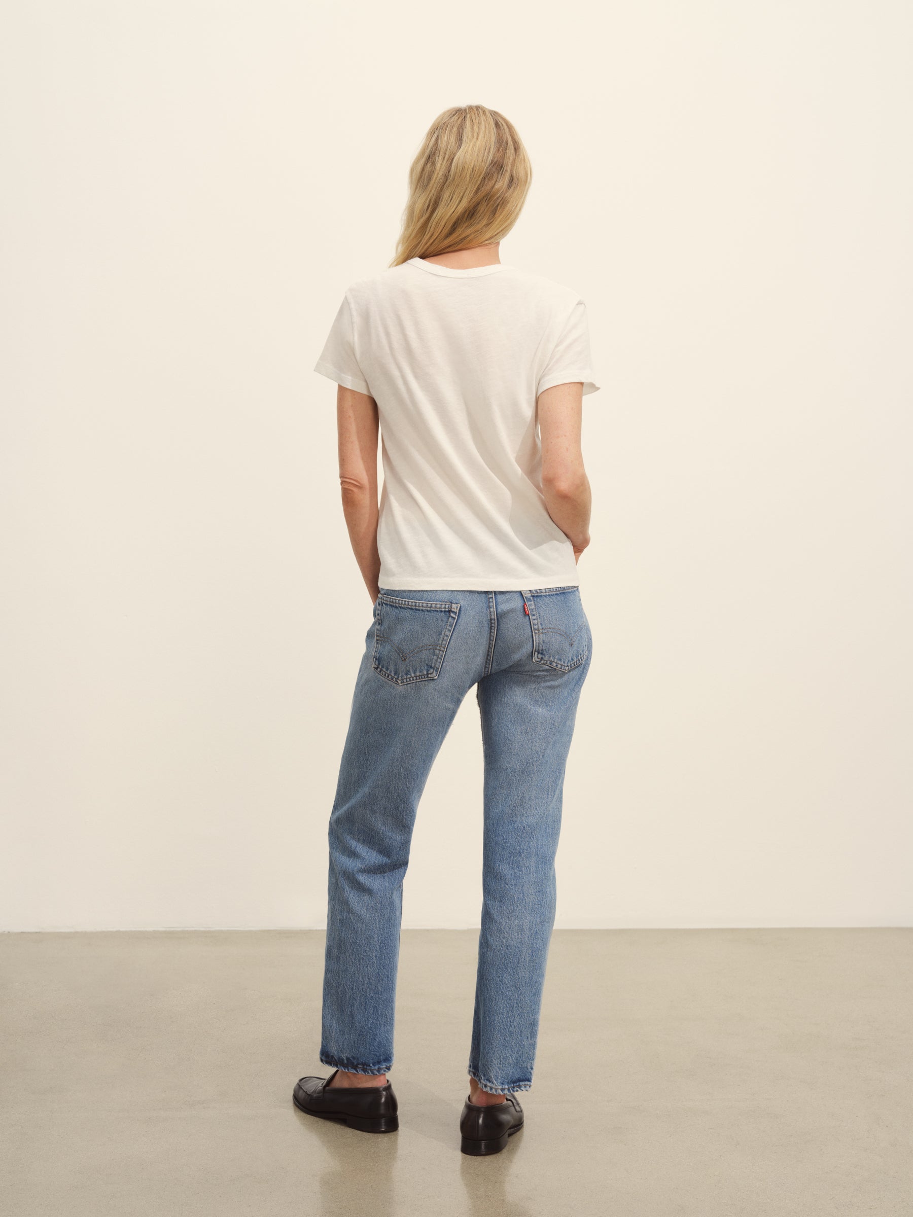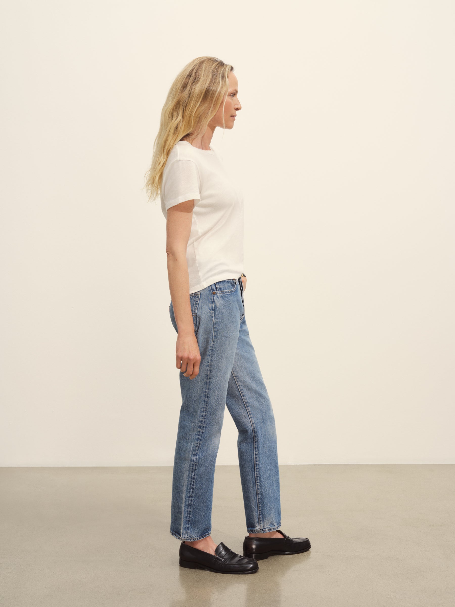 Classic fit short sleeve crewneck tee with a straight hem, cut from a lightweight slub cotton.