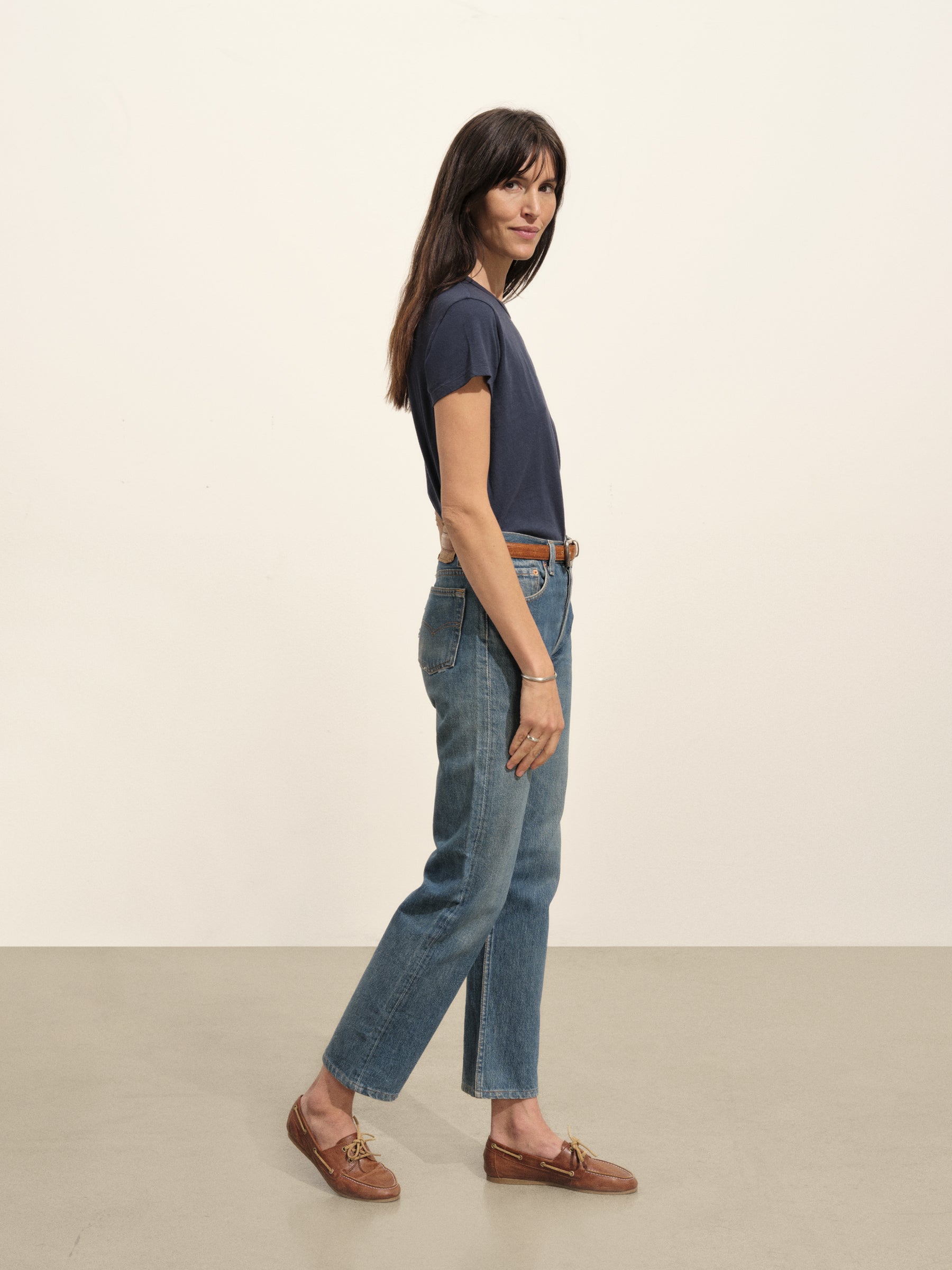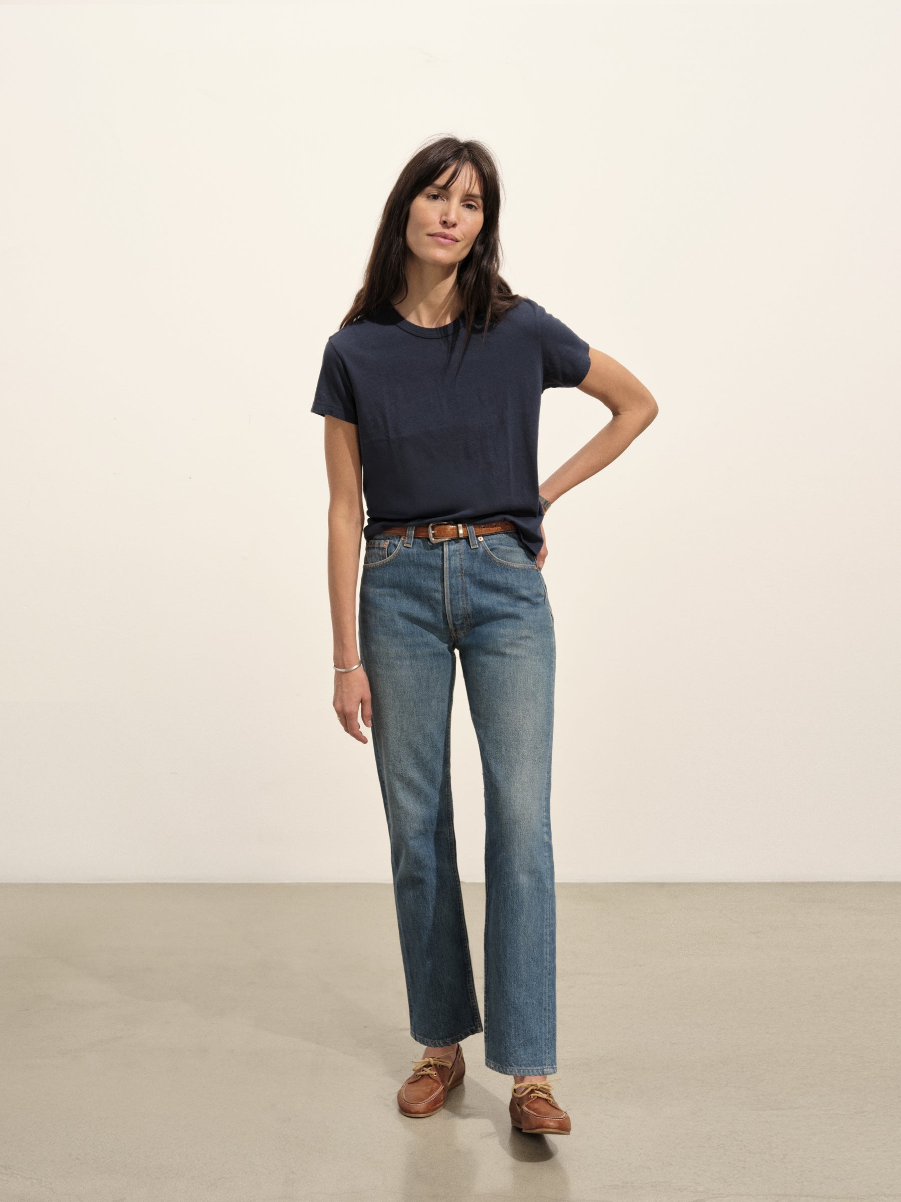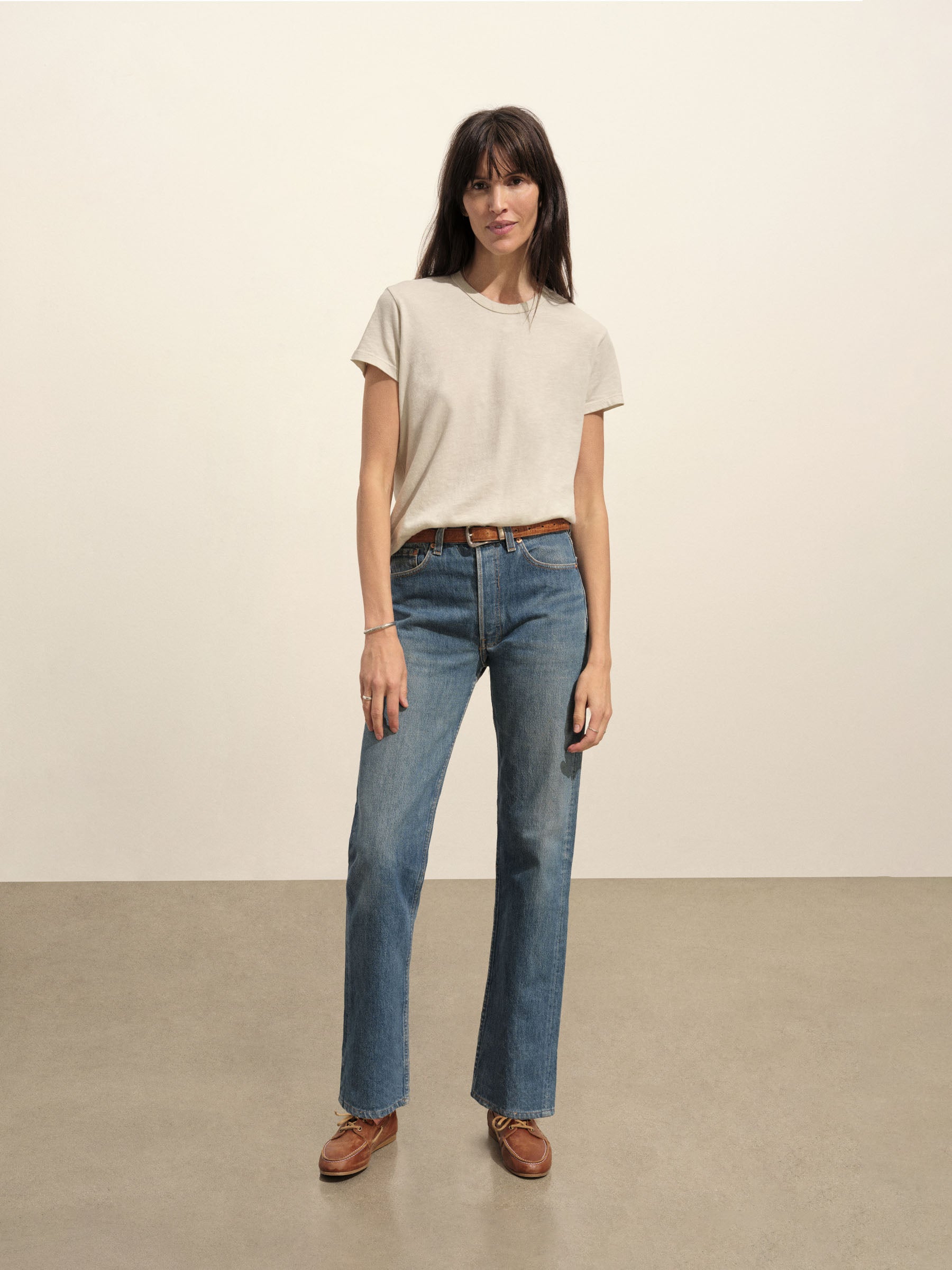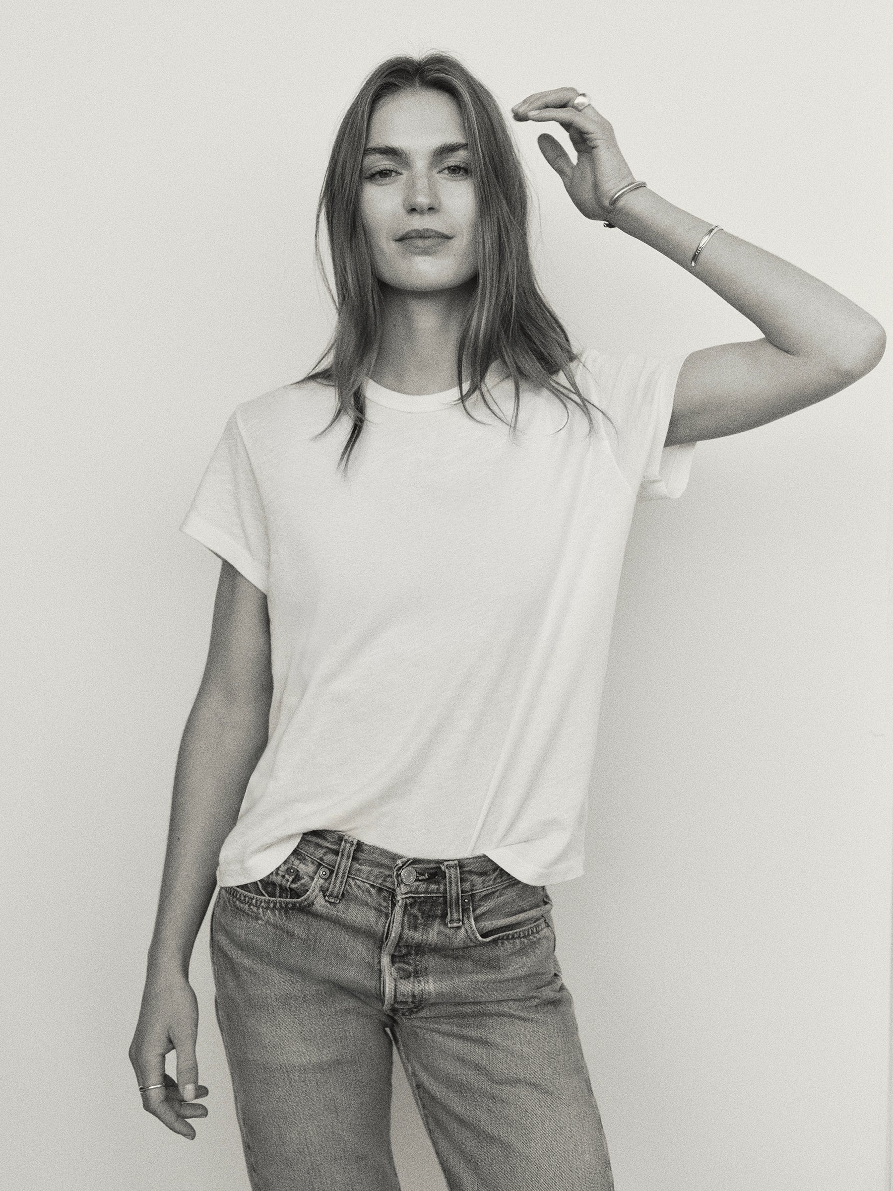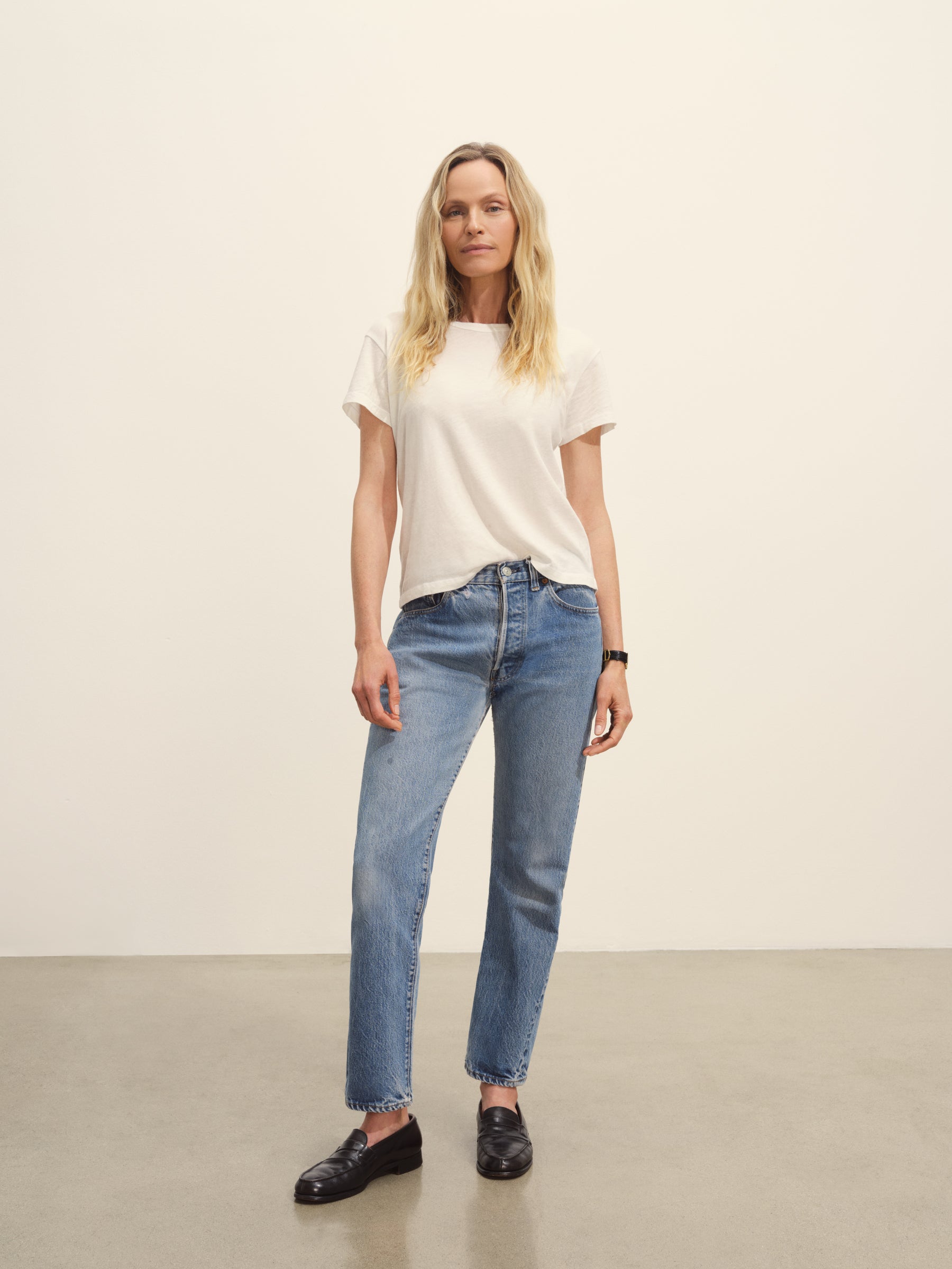 Classic fit short sleeve crewneck tee with a straight hem, cut from a lightweight slub cotton.