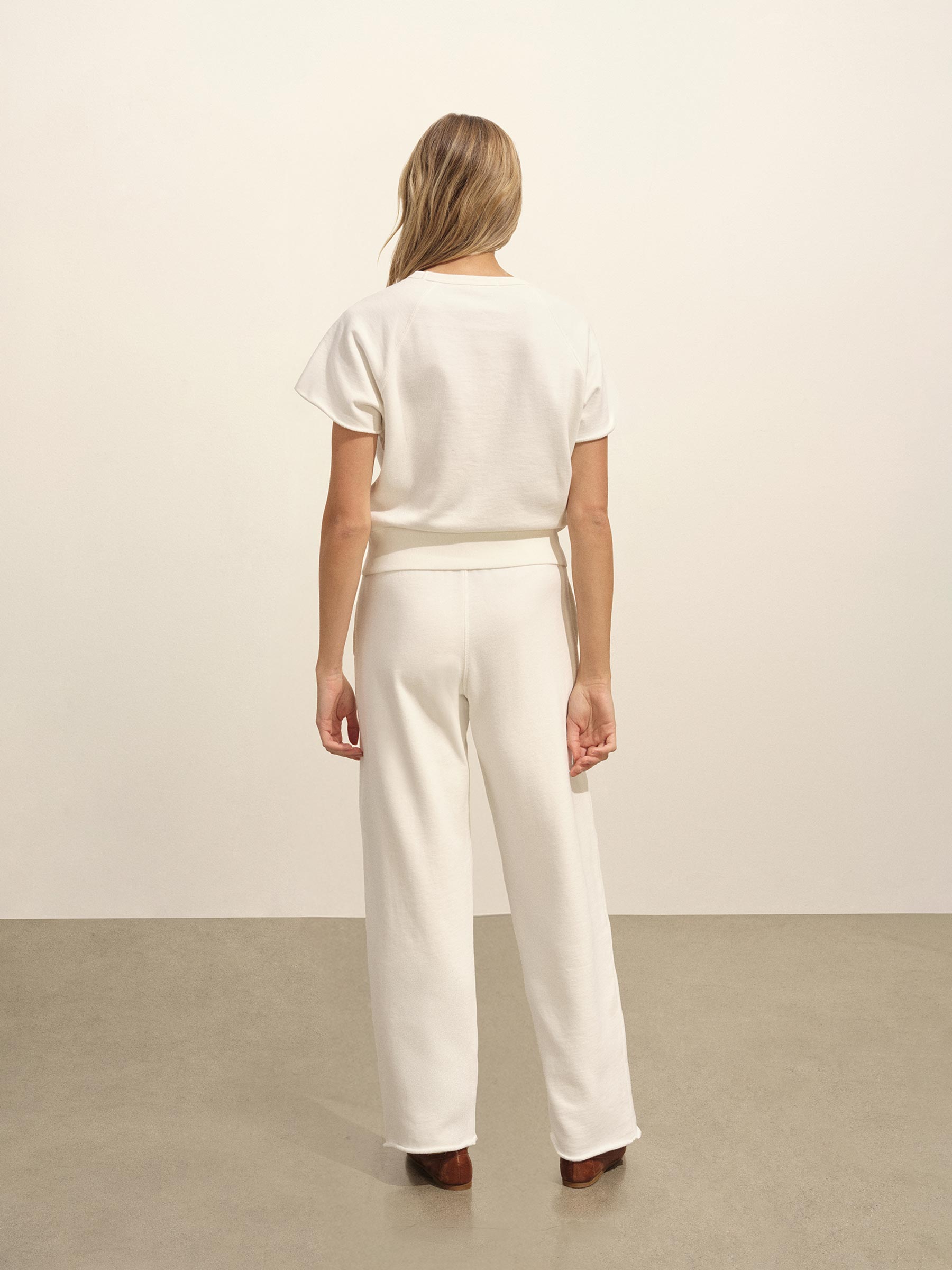A relaxed wide leg sweatpant in plush towel terry, garment washed for a lived-in feel.